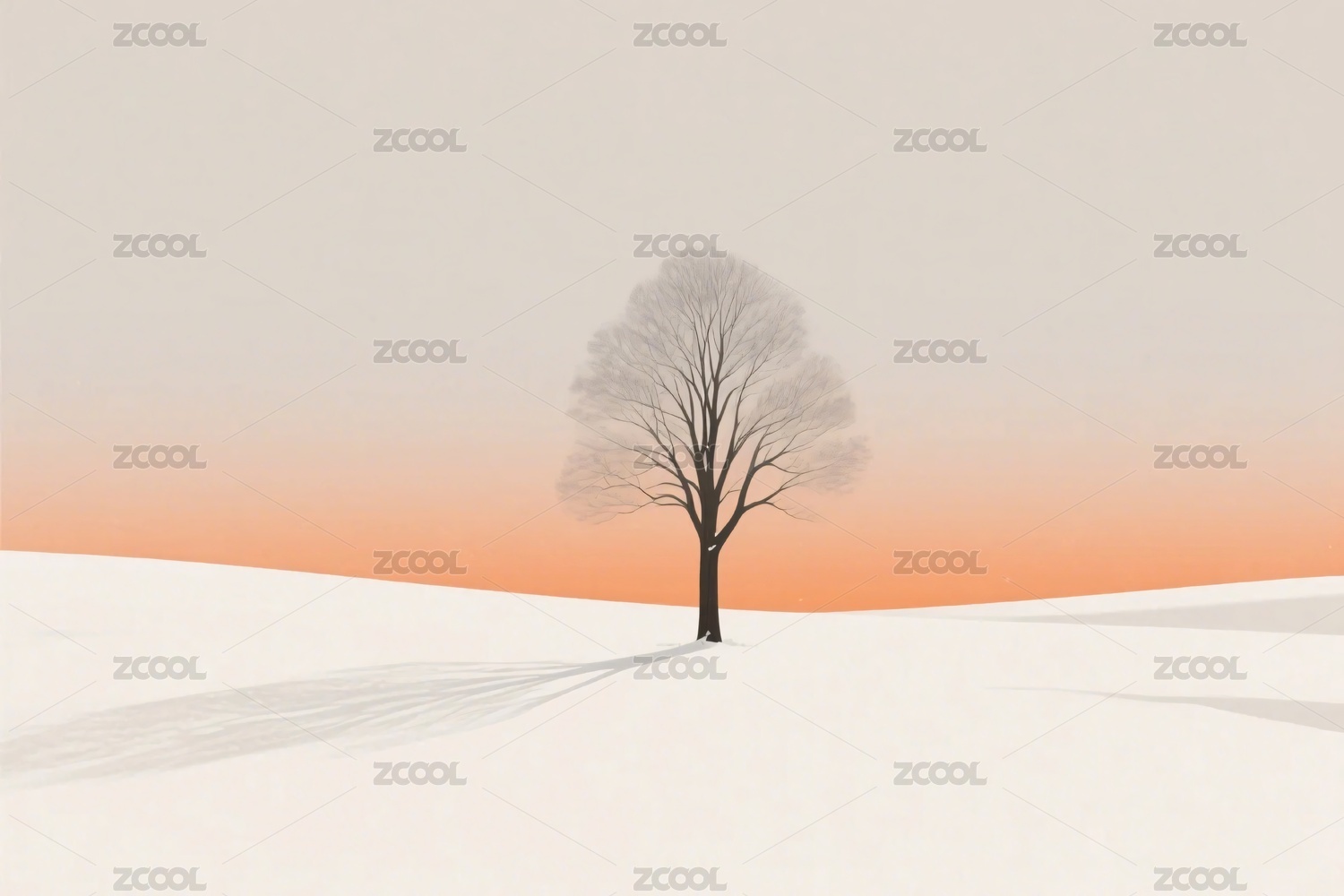 冬天, 水彩, 插画, 唯美, 自然, 冷色调, 色彩, 柔和, 雪景, 静谧