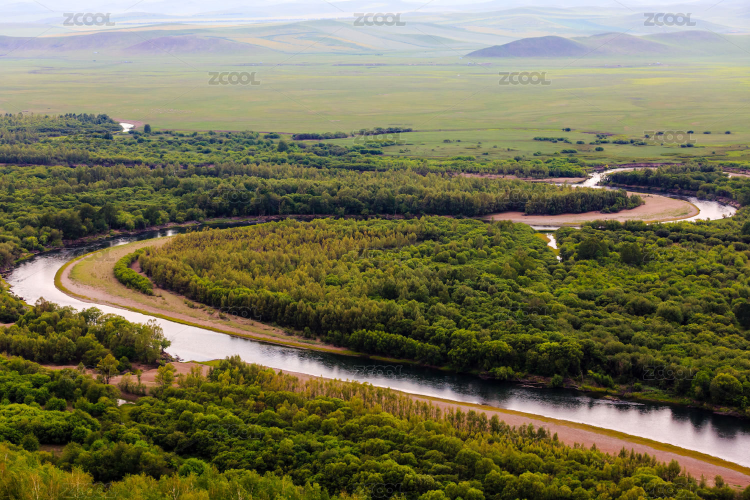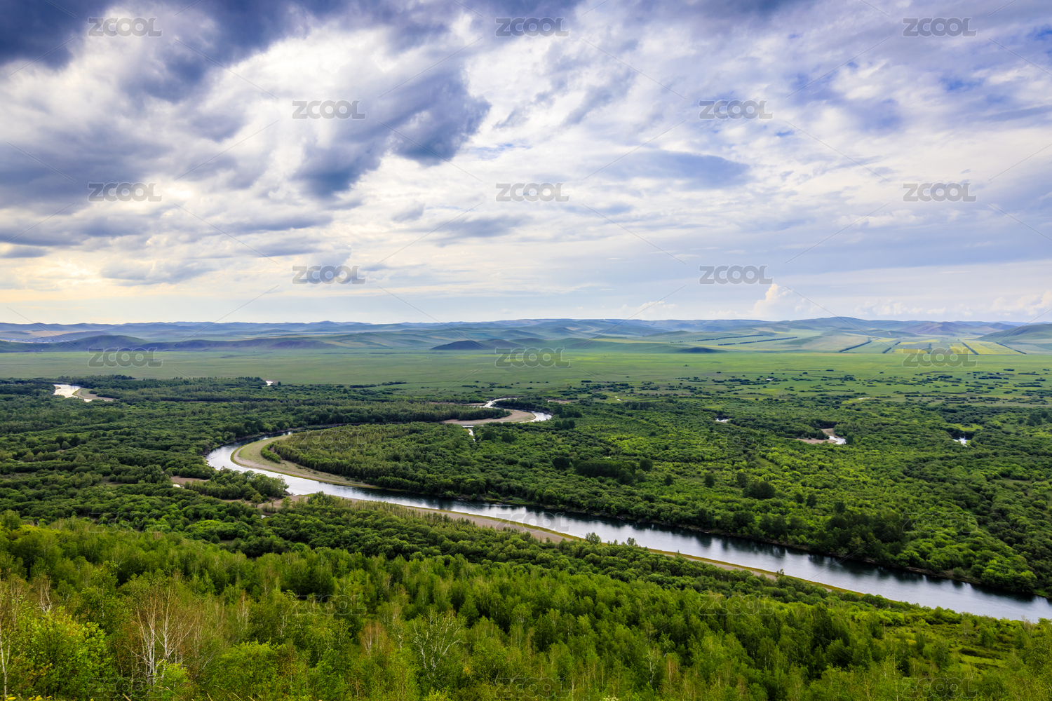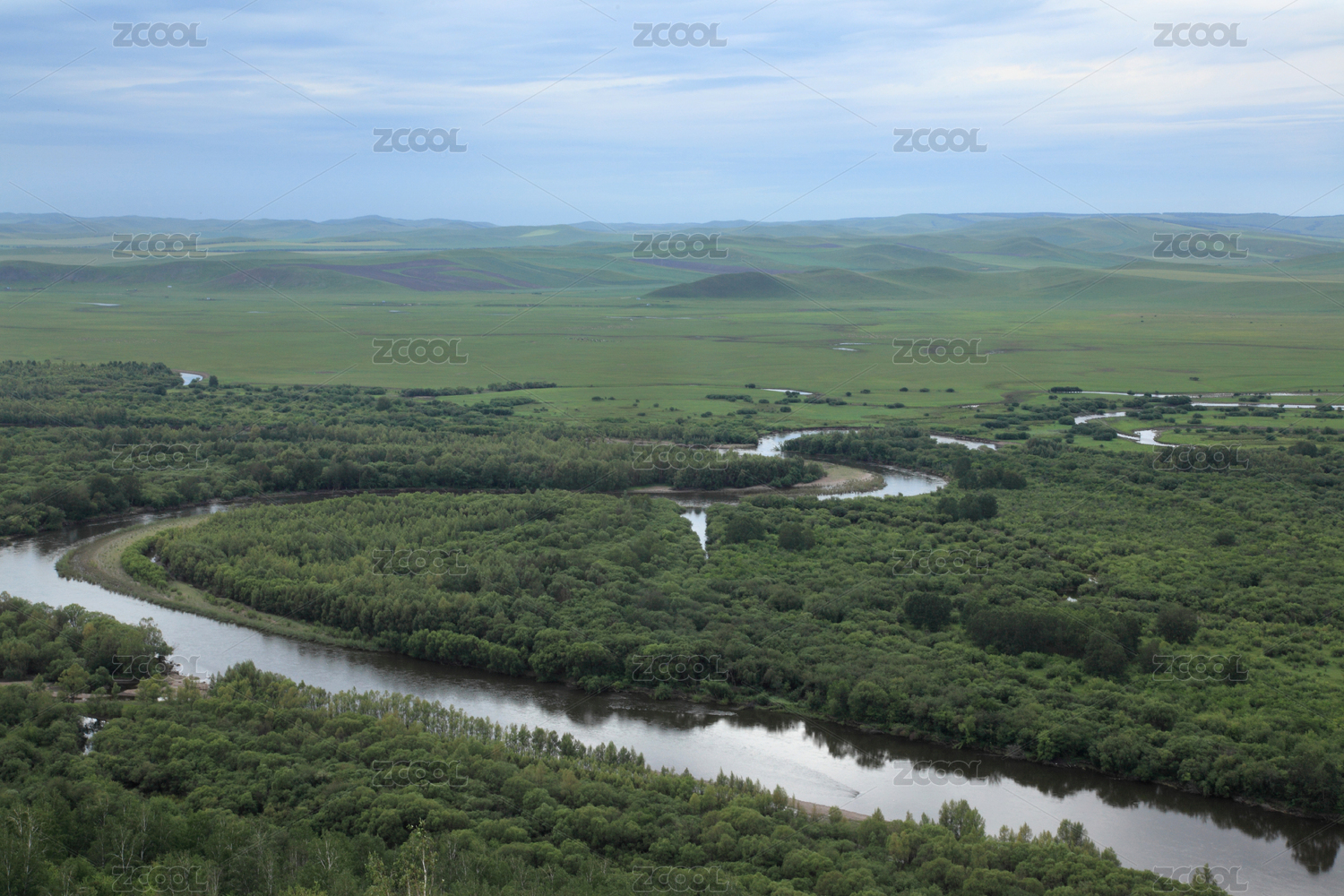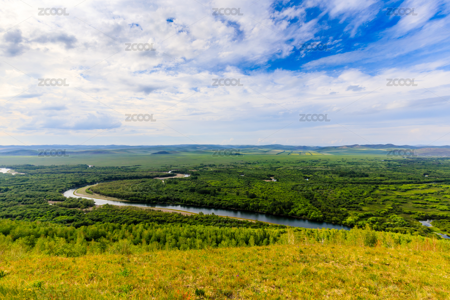 中国内蒙古鄂尔多斯根河湿地全景风光