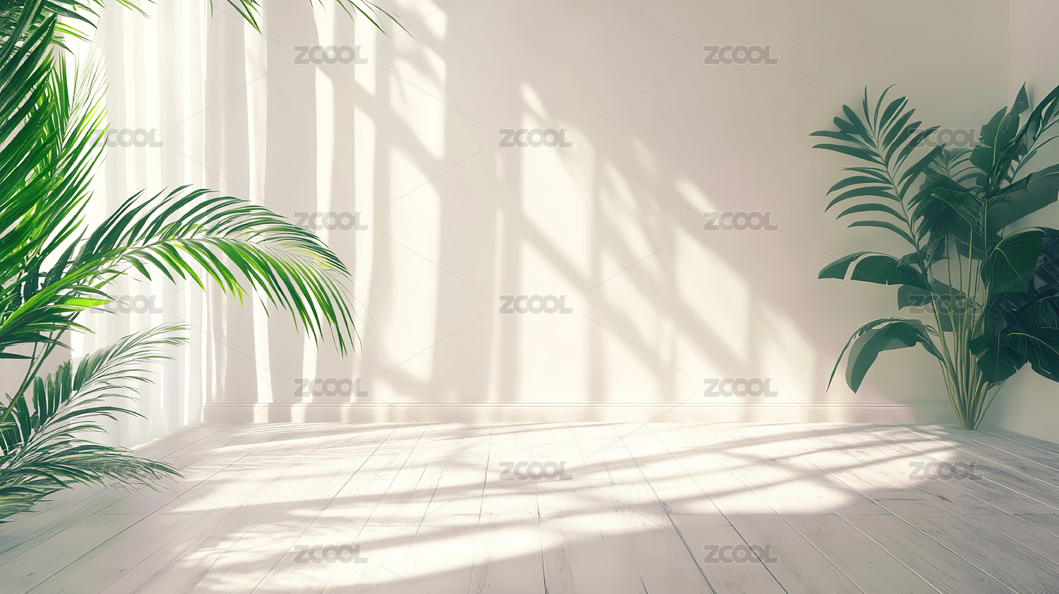 干净的室内白墙和绿植装饰简约空白渲染背景