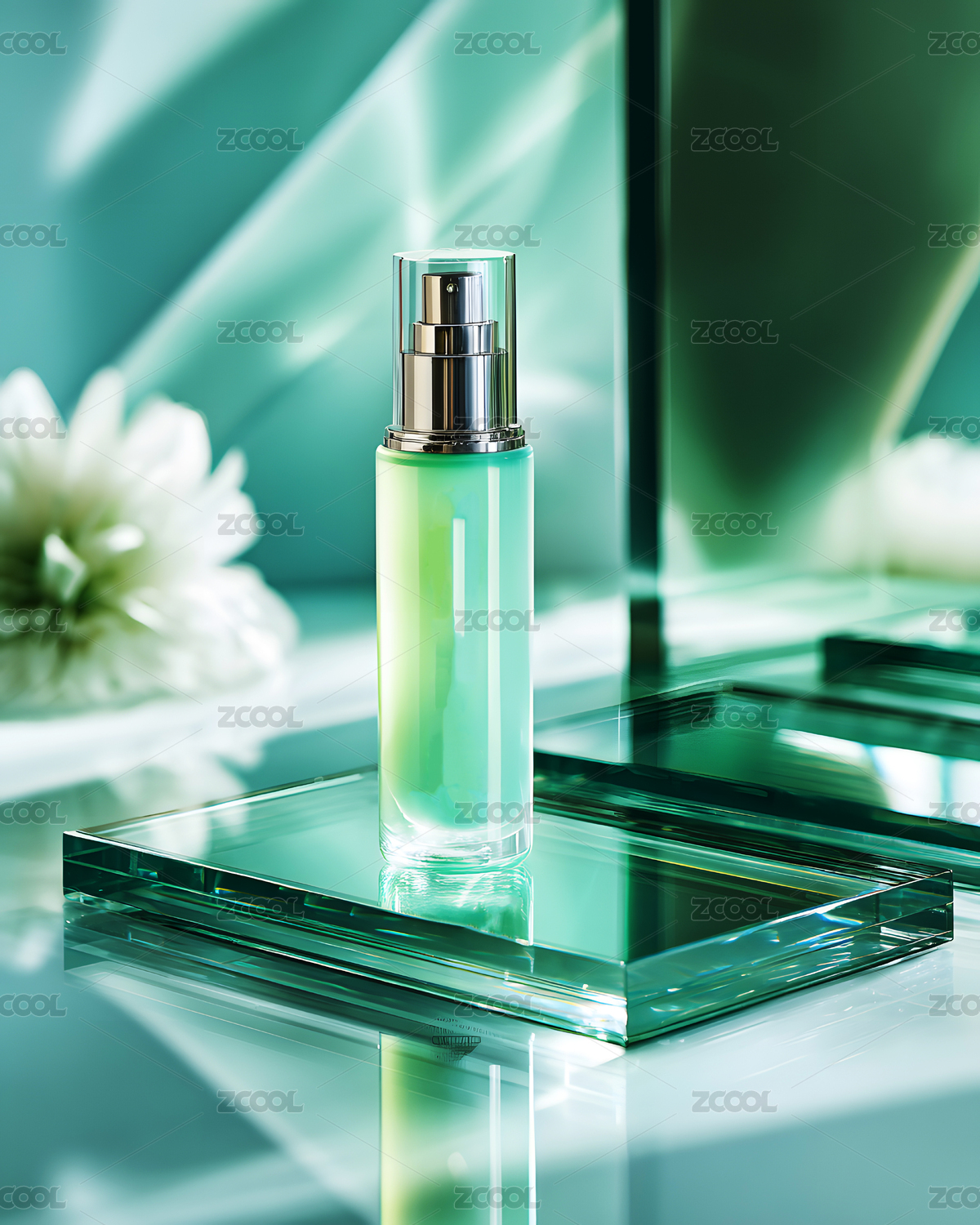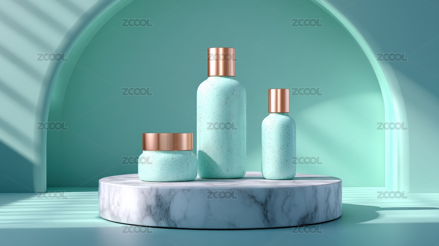 精致的薄荷绿化妆品展示
