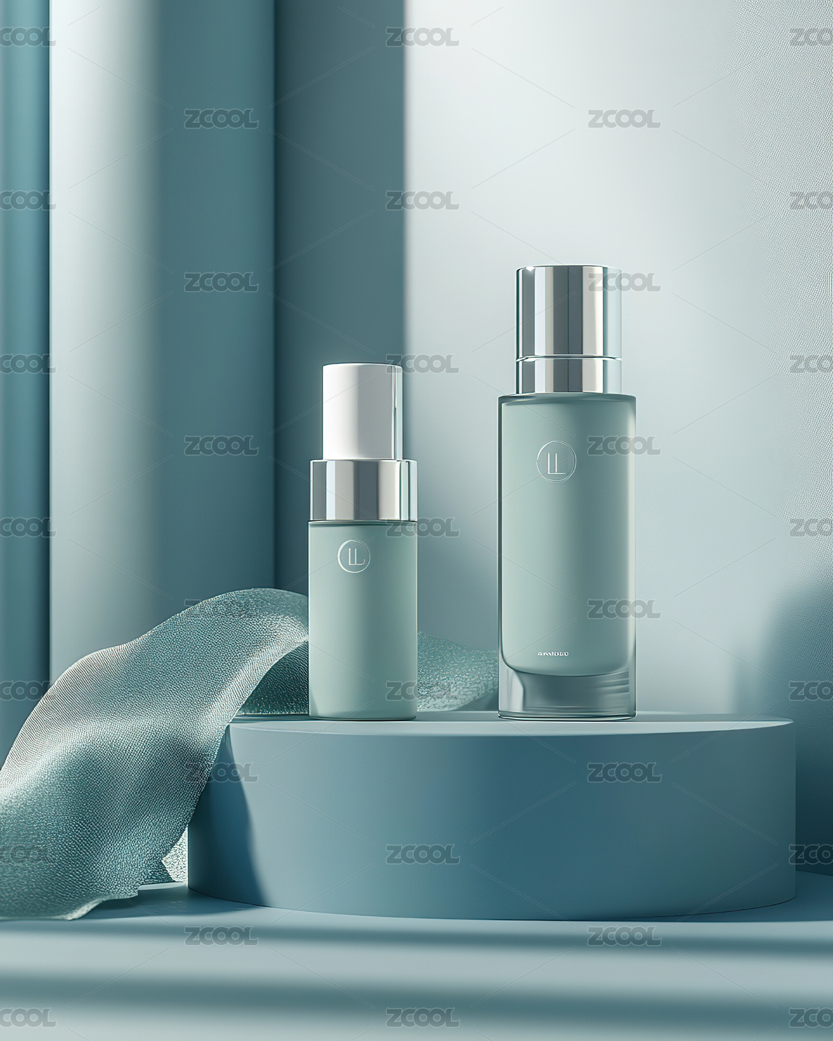 护肤品玻璃瓶在电商展台上展示