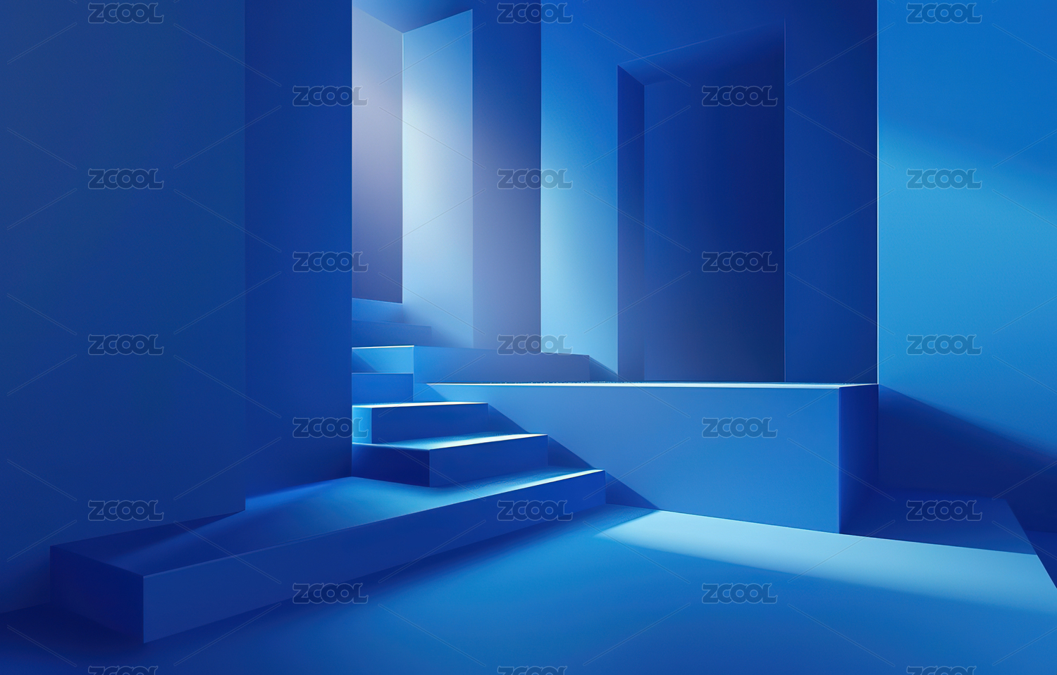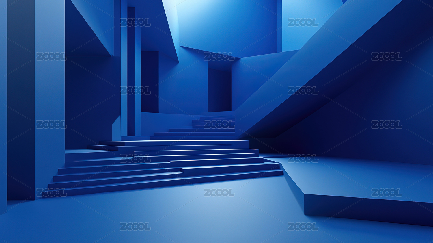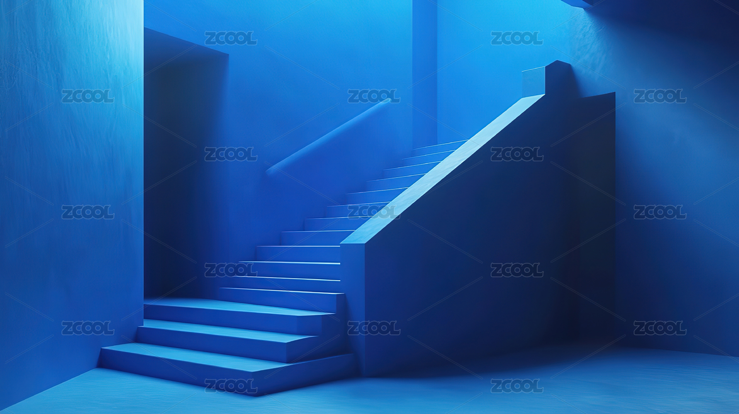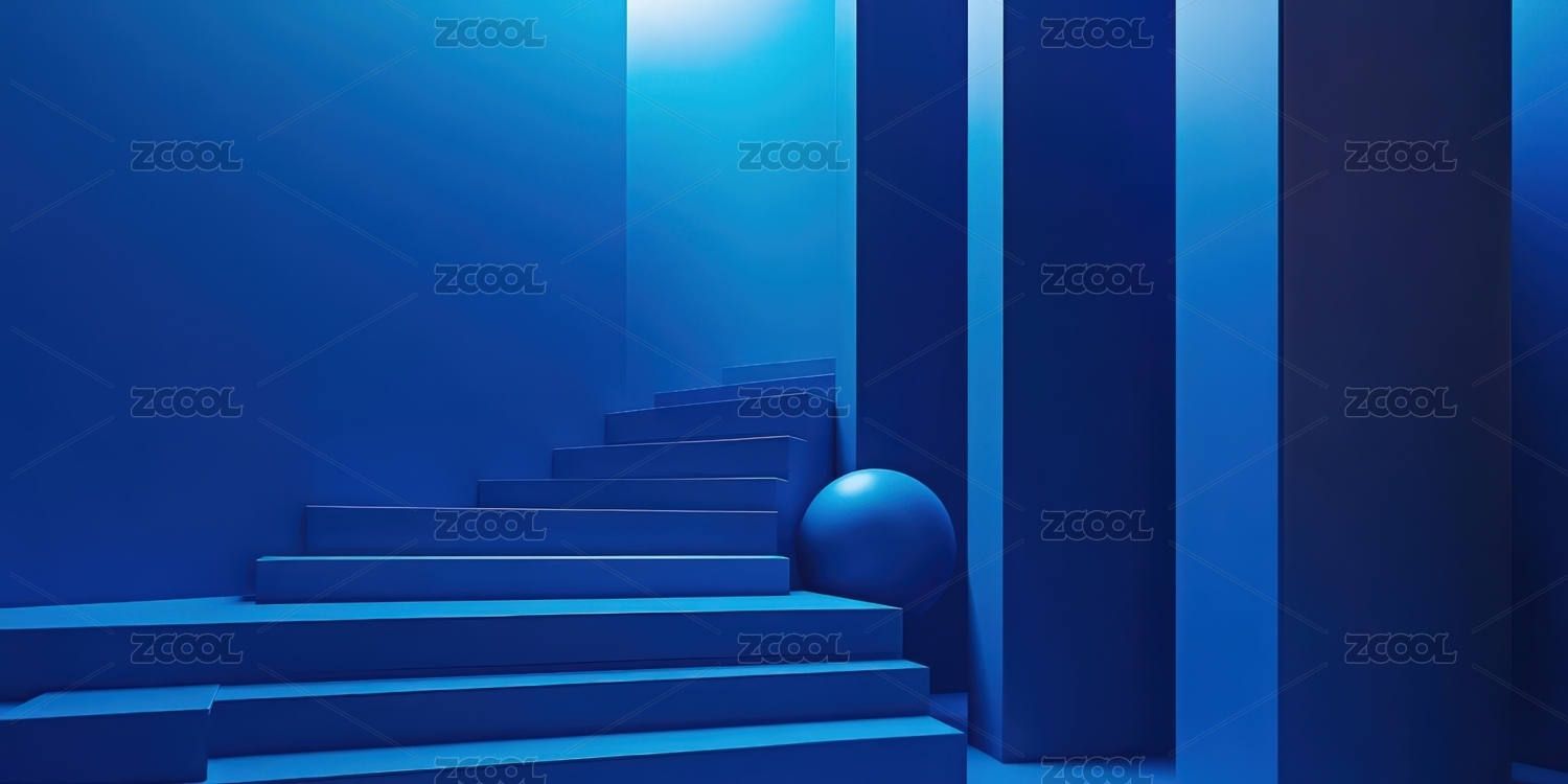蓝色背景下的蓝色楼梯