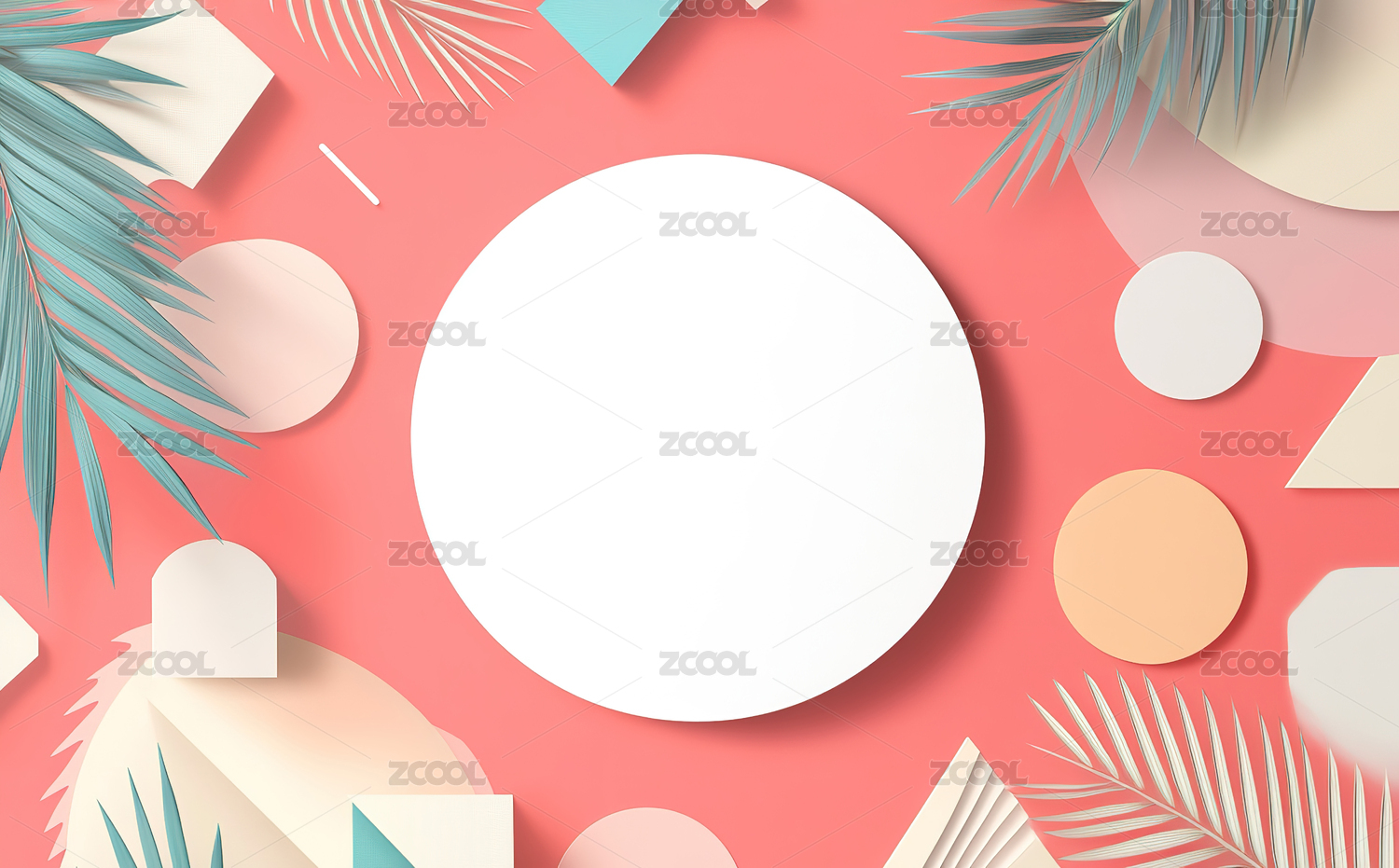 热带植物与几何图形背景