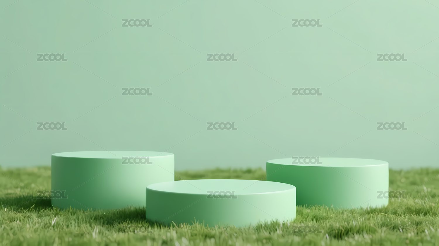绿色圆形平台与草地的简约场景