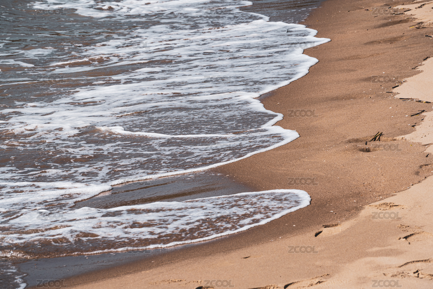 航拍广东汕头南澳岛海岸沙滩上层层的波浪