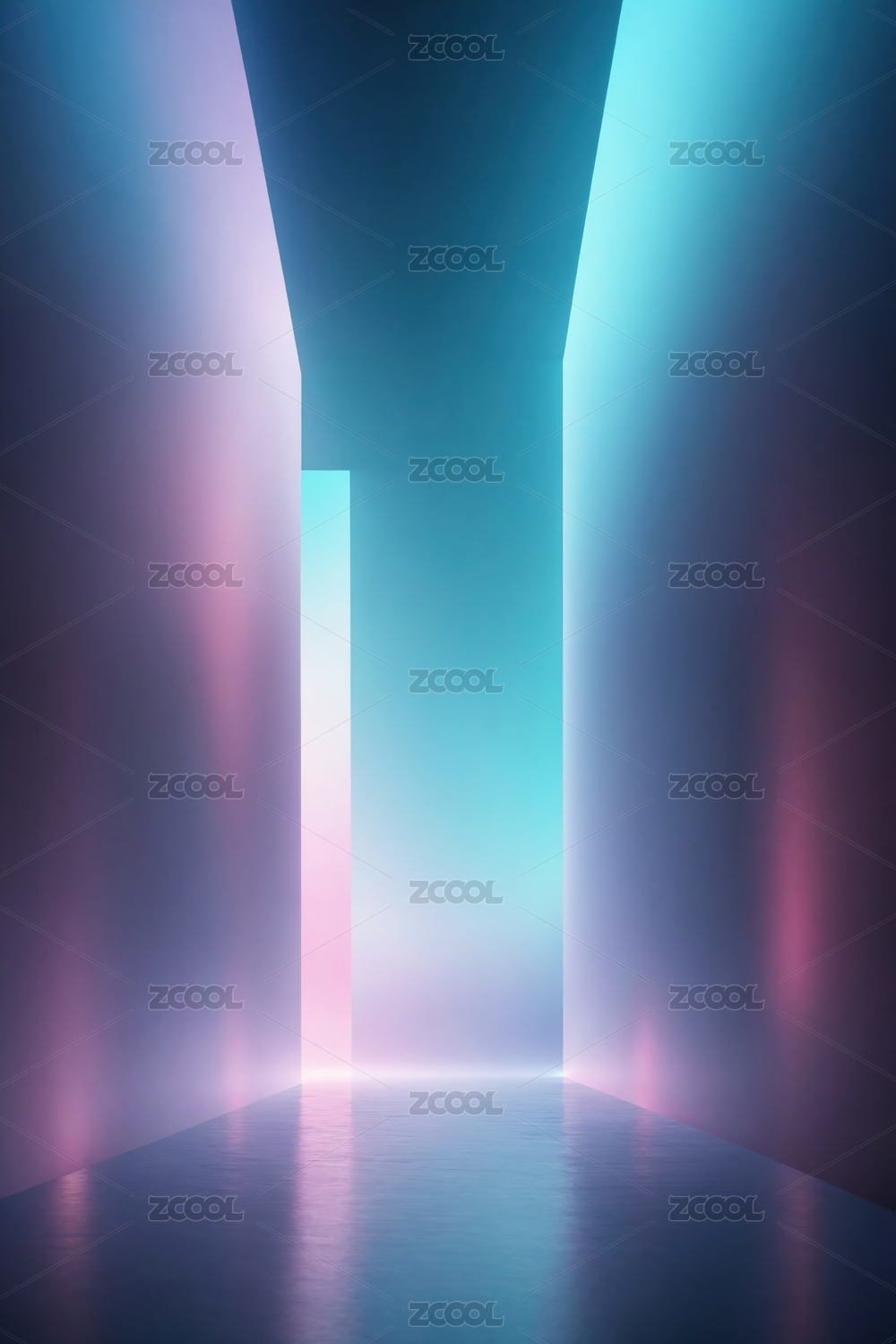 阳光穿过玻璃幕墙照在空场地上,商务背景
