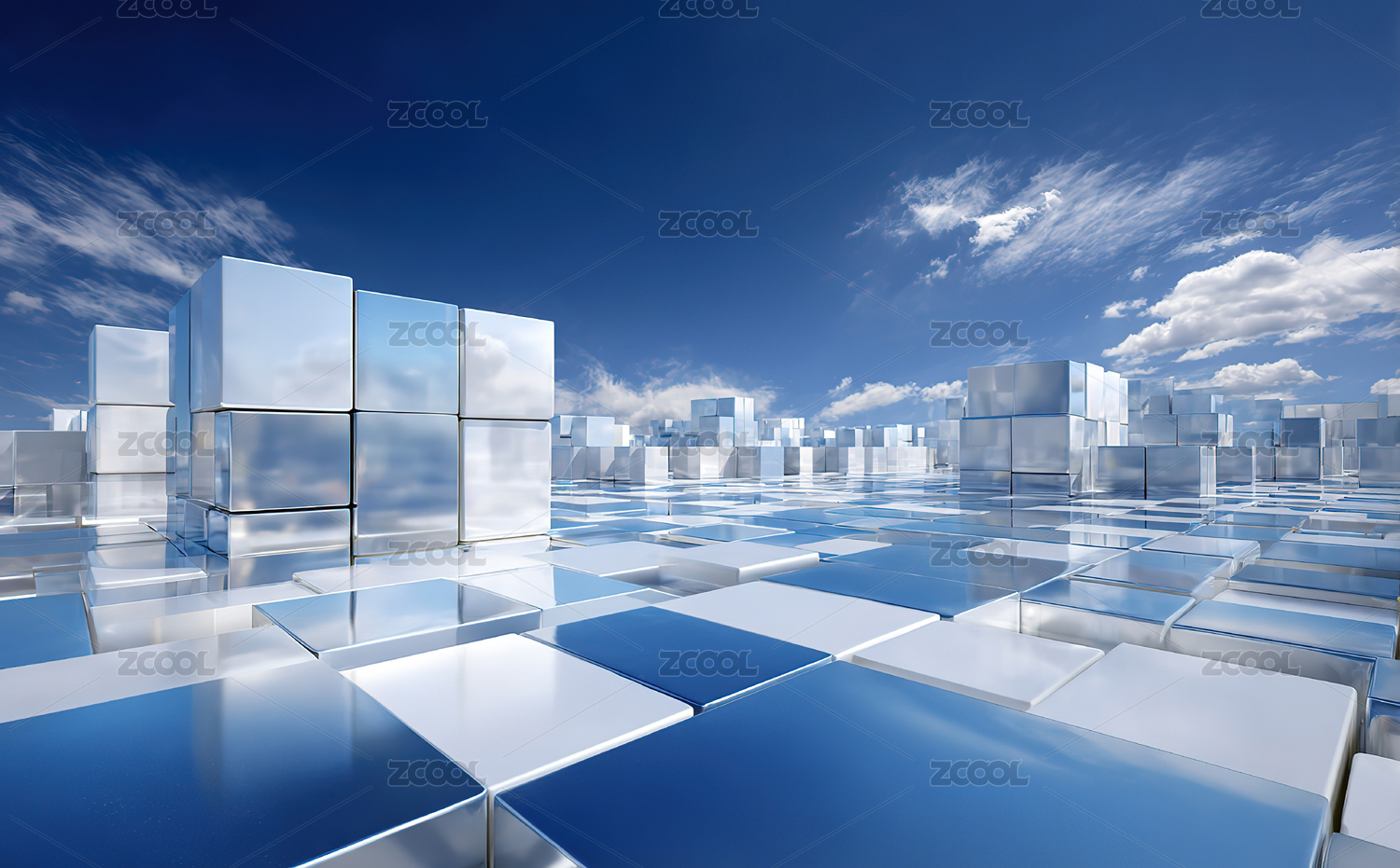 镜面立方体构成的未来城市景观