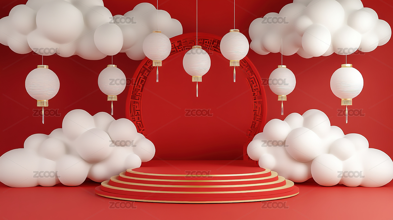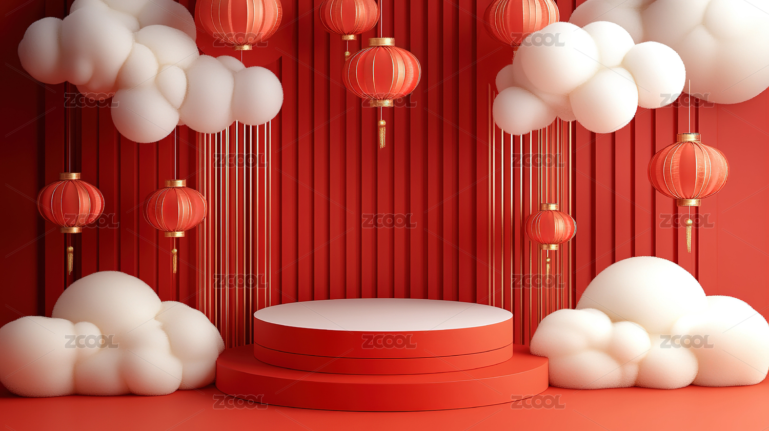 红色背景下的中式灯笼