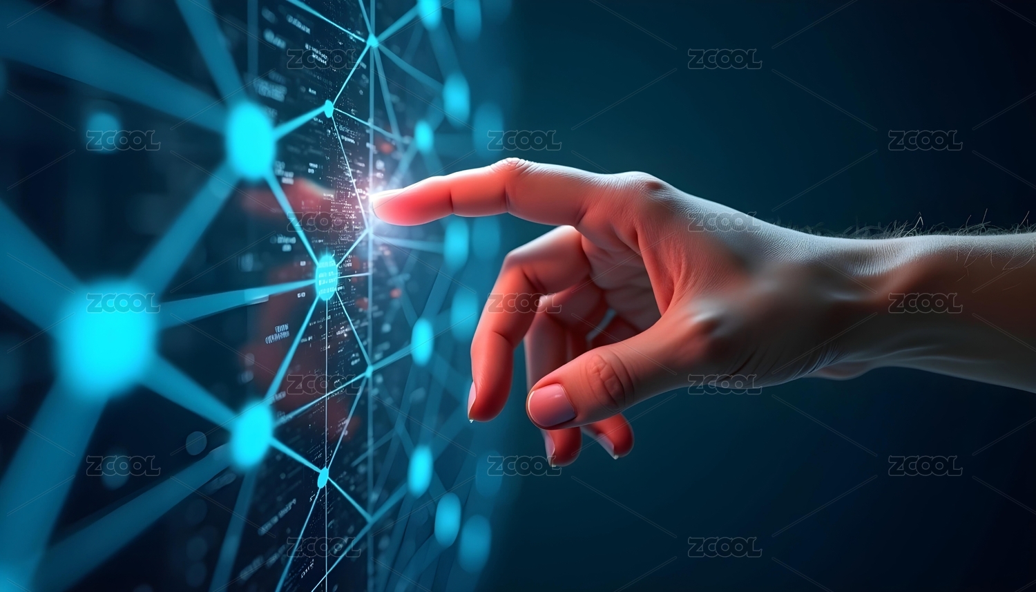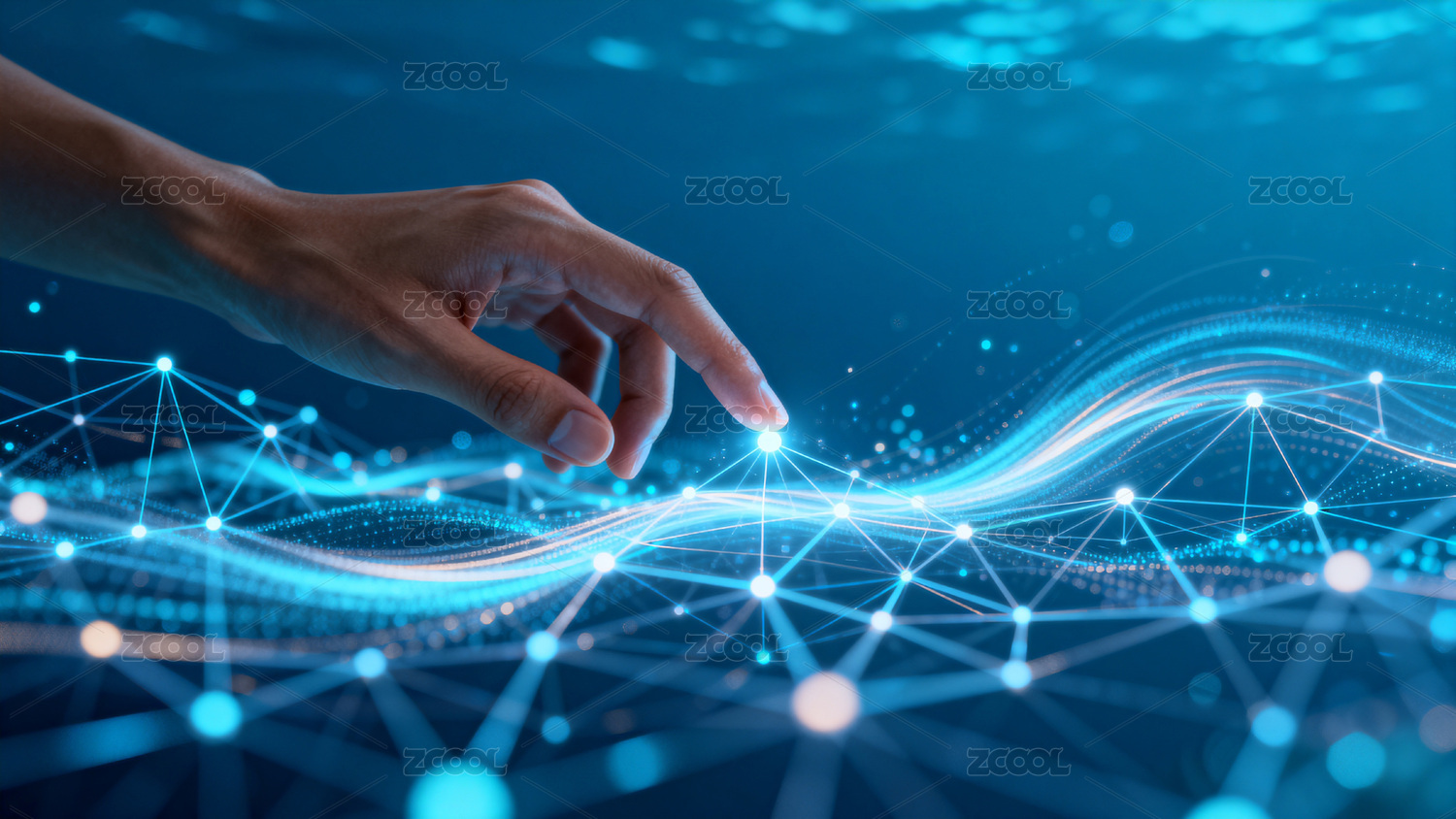 手触发光网络节点科技感图像