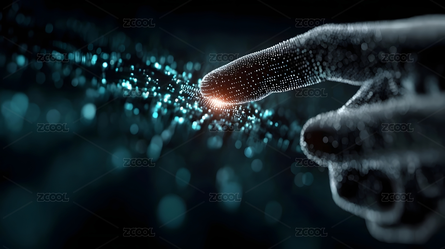 数字手指触碰光点释放数据粒子