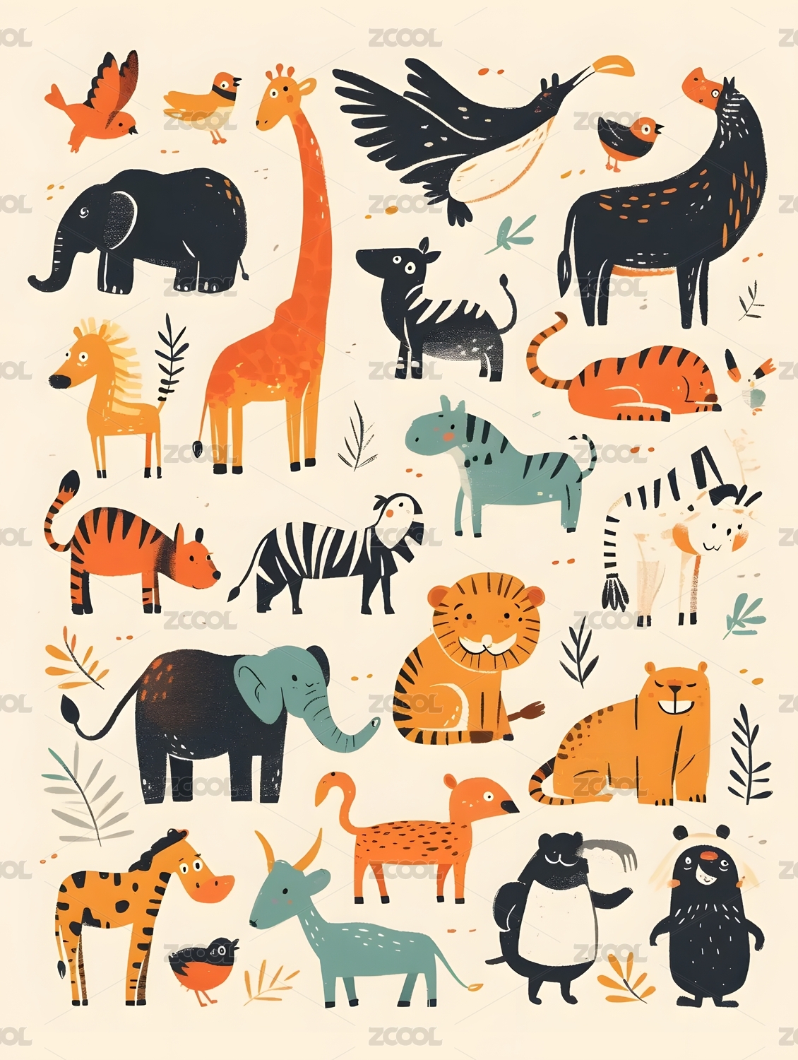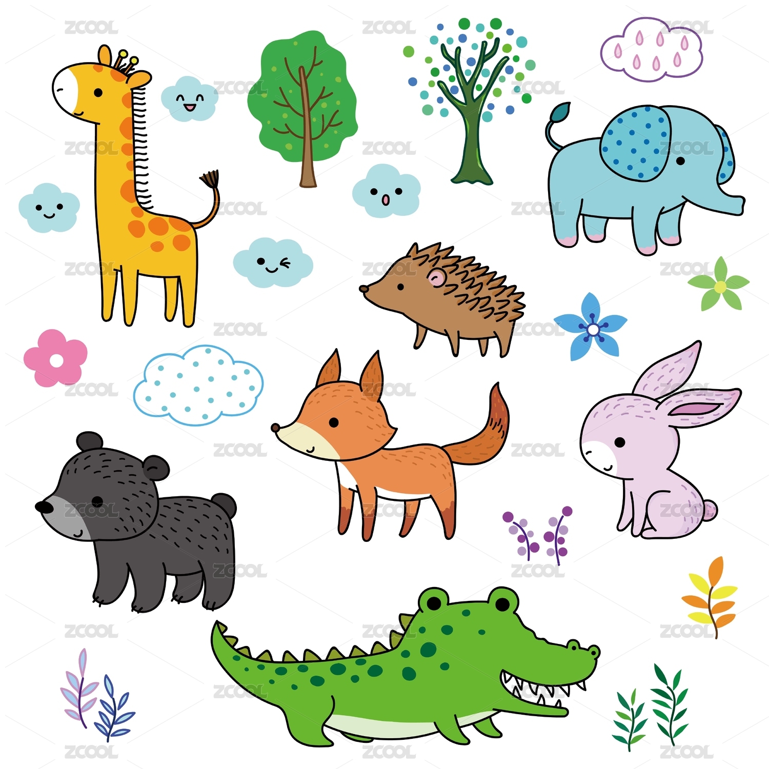 鳄鱼狐狸老虎猫卡通动物形象插画