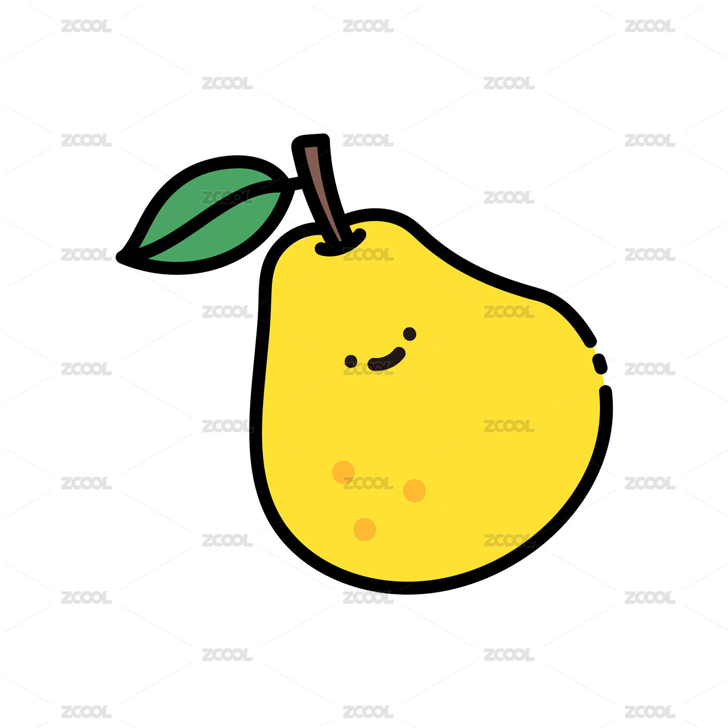 一个卡通梨上面有一张脸上面有一片叶子高清