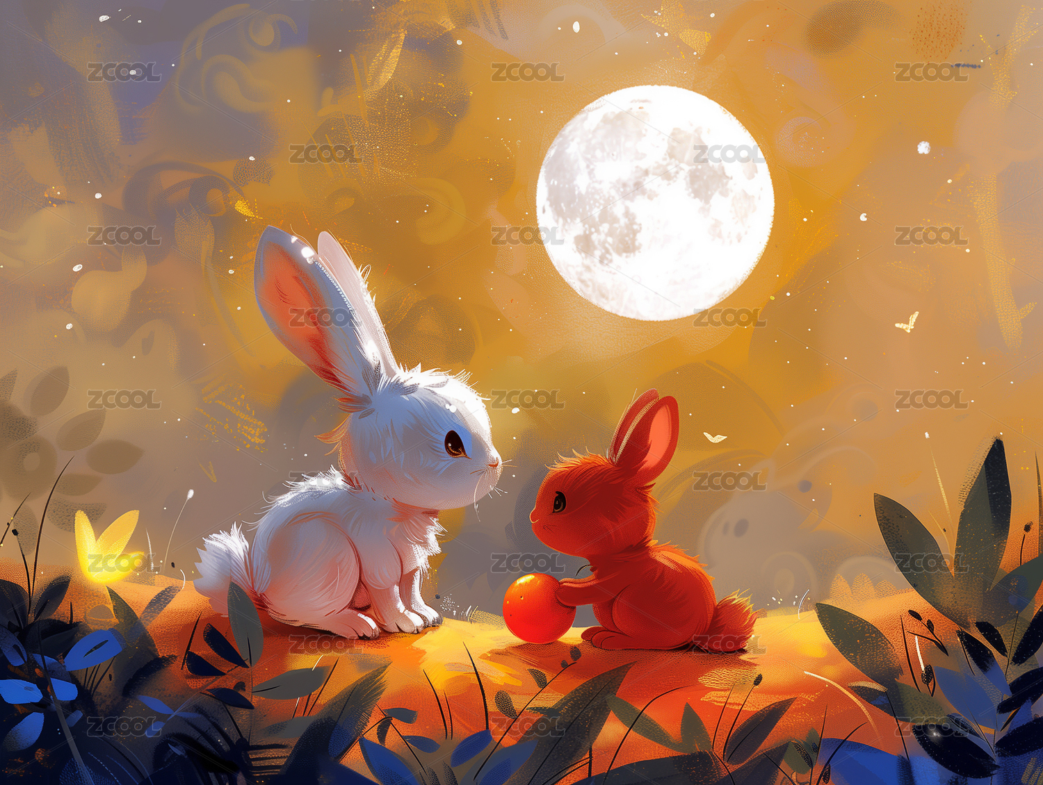 夜里小熊带着兔子和小鸟一起在森林里冒险