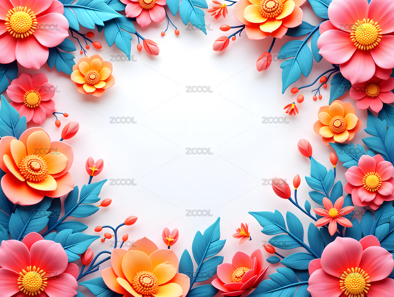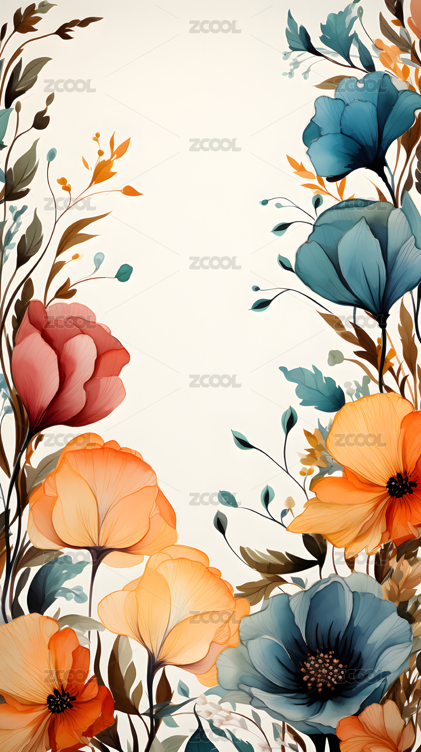 数码水彩花朵围绕边框植物抽象图形海报背景