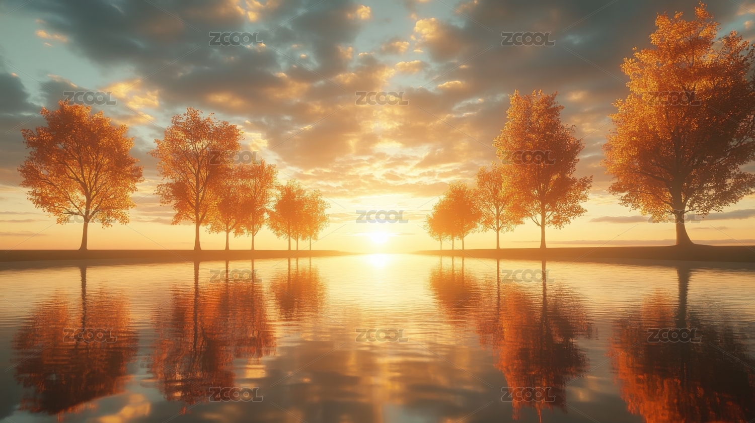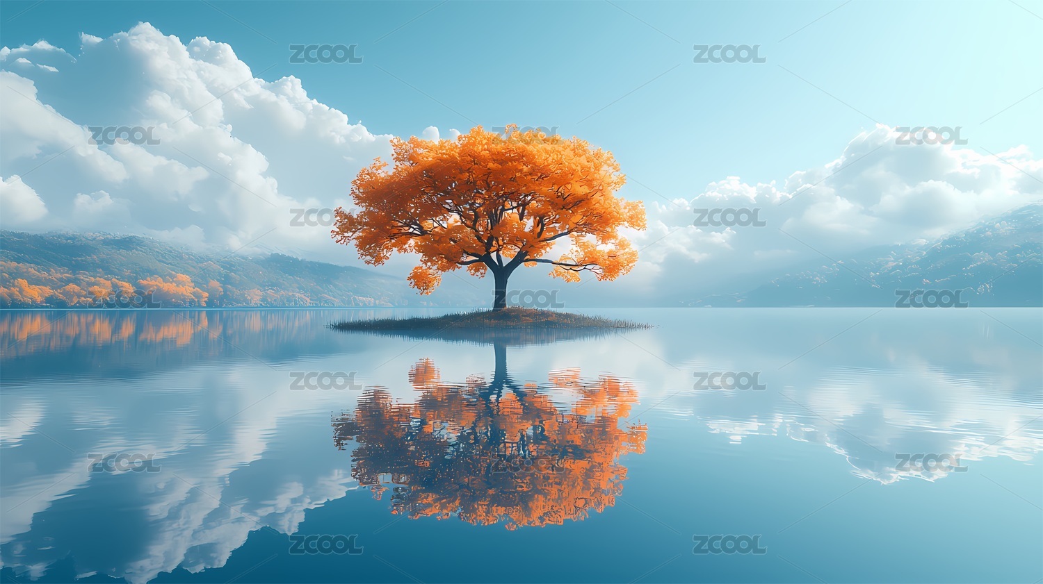 秋天,秋季,树,户外,自然,立秋,秋分,无人,3D,渲染
