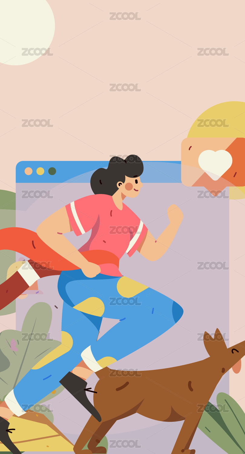 锻炼健康跑步的人物矢量互联网运营手绘插画