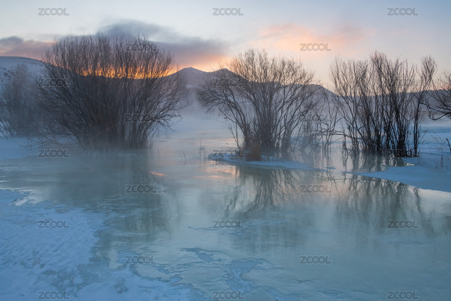冬日河畔晨曦静谧