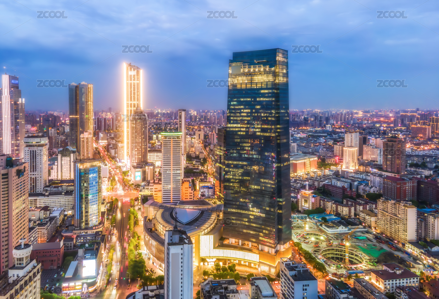 晴朗的蓝天下南京市中心新街口的高楼与城市天际线全景