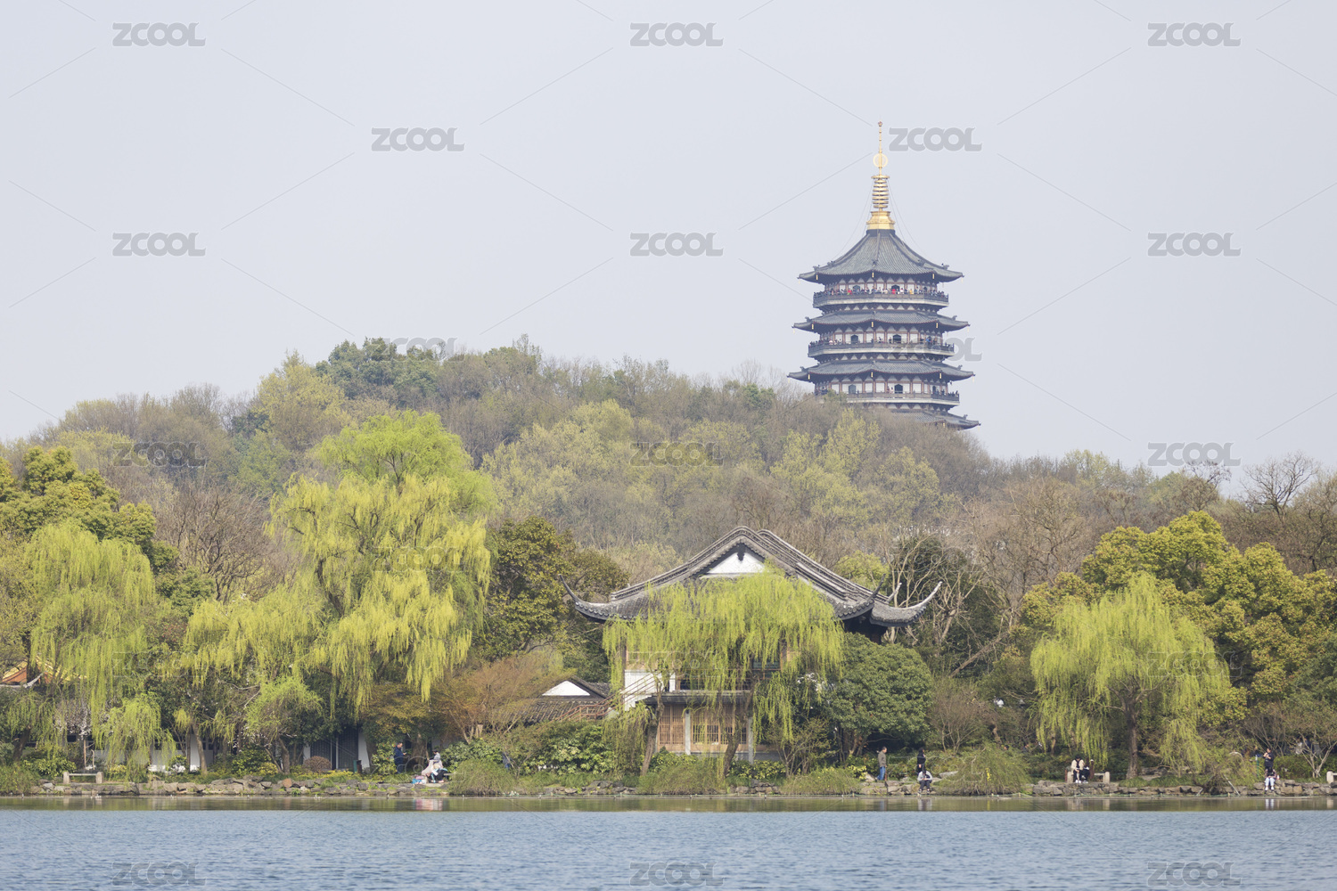 江南杭州西湖传统古典古风建筑雷峰塔春天