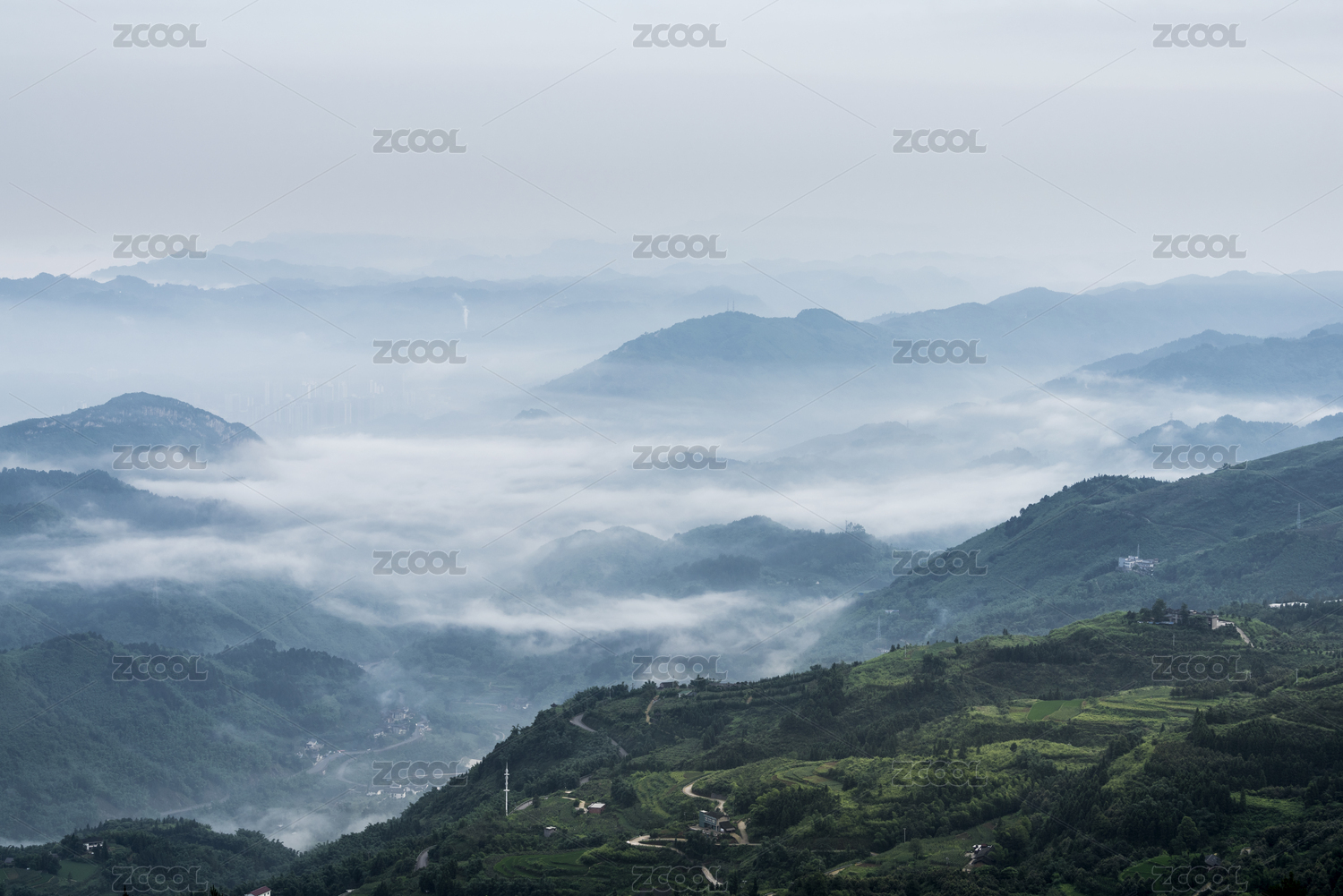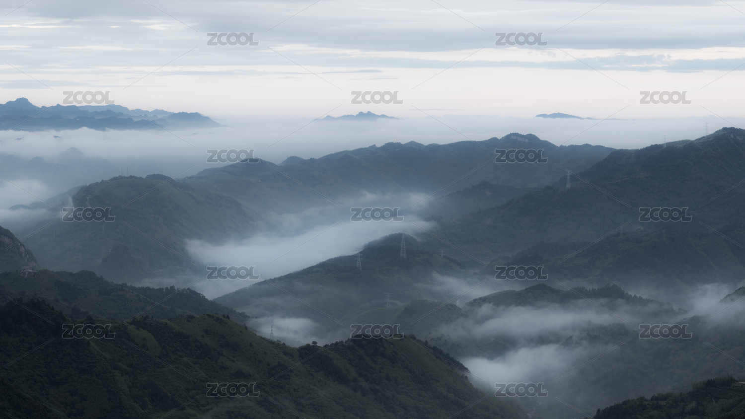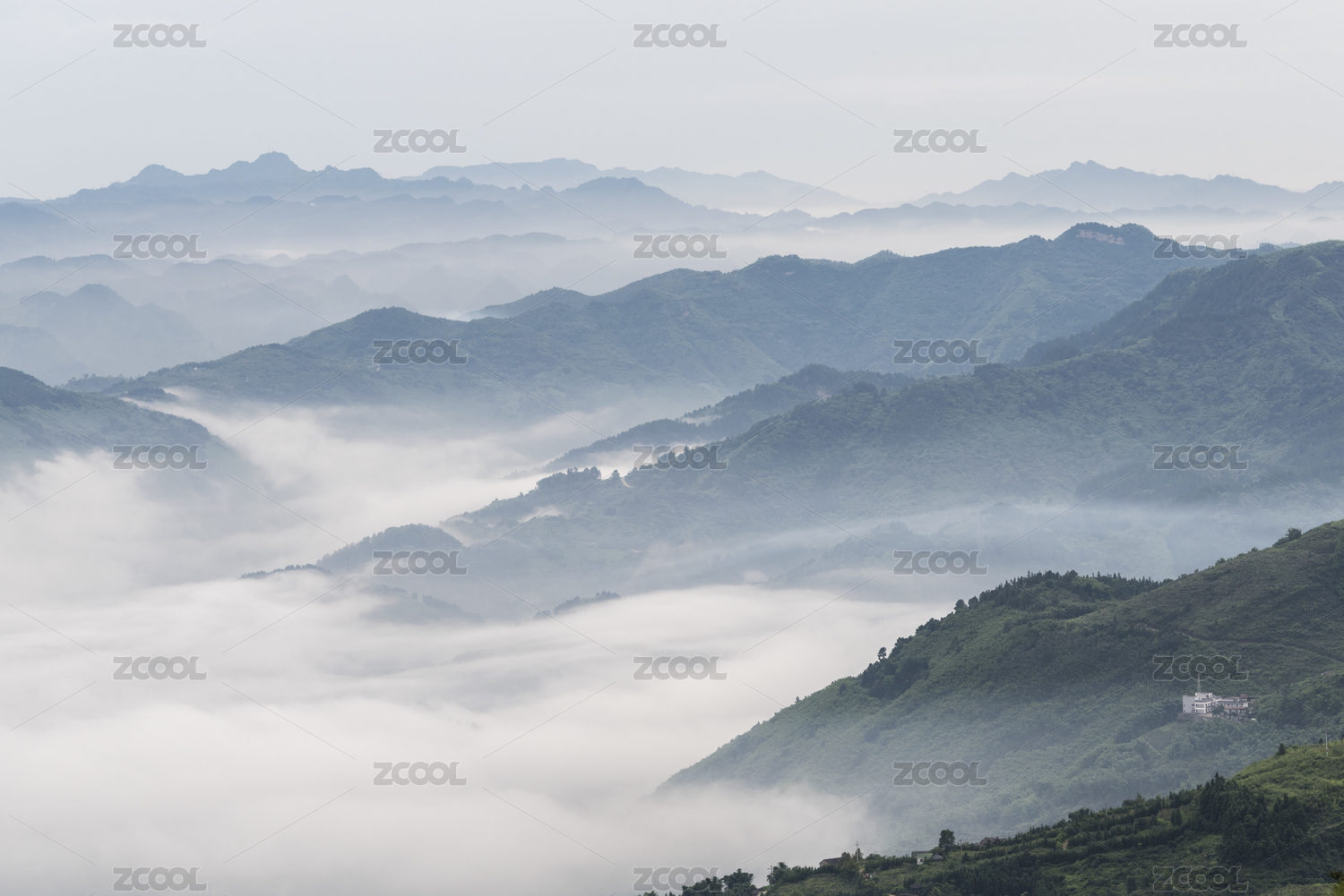 夏季中国重庆黑山镇晨雾中的群山自然风光