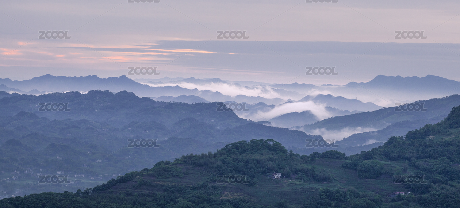 夏季中国重庆万盛黑山镇晨曦中的莽莽群山