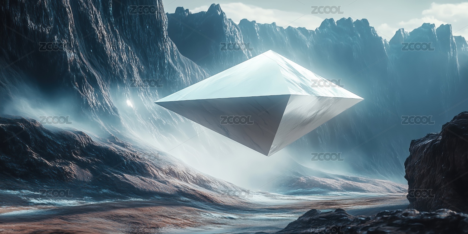 科幻科技荒凉外星球悬浮太空舱3D立体插画