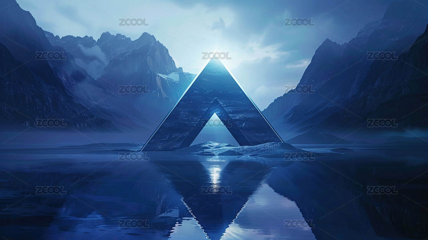 玻璃,水晶,蓝色,光泽,式样,发光,纹理,形状,三角,天空