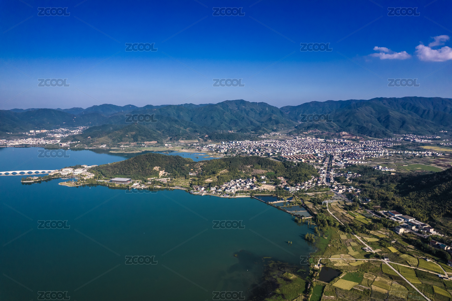 中国浙江宁波余姚四明湖风光航拍