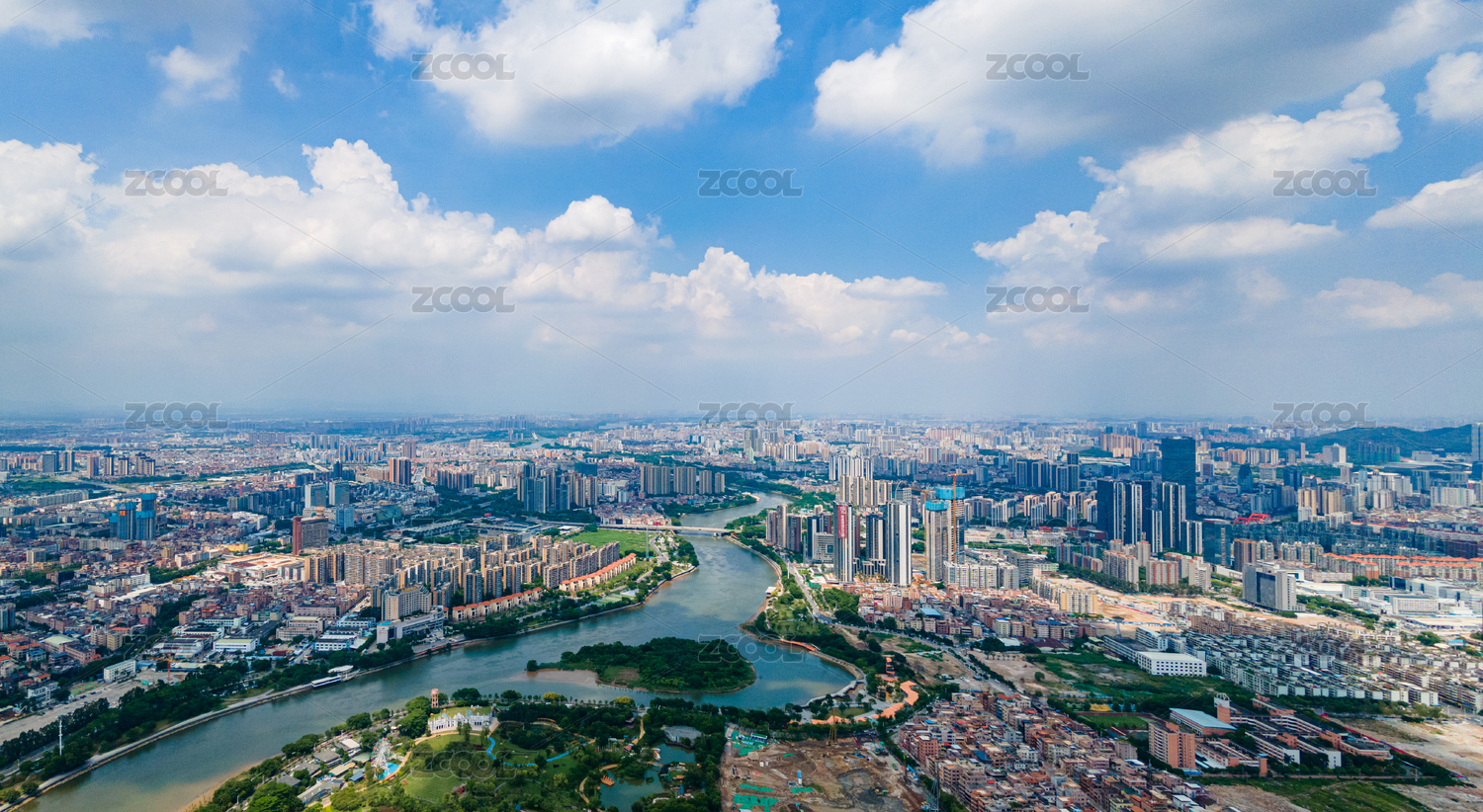 东莞东江两岸和万江城市天际线风光航拍