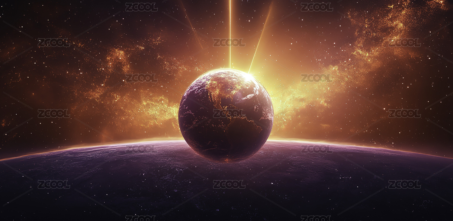 未来感,星球,太空,光线,发光,渐变,电影感,黑暗,橙色,紫色