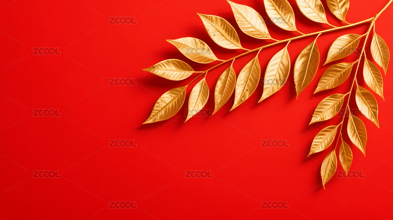 金色枝叶红底装饰场景