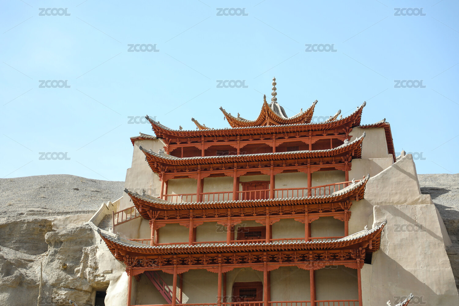 世界遗产著名历史古迹敦煌莫高窟九层楼