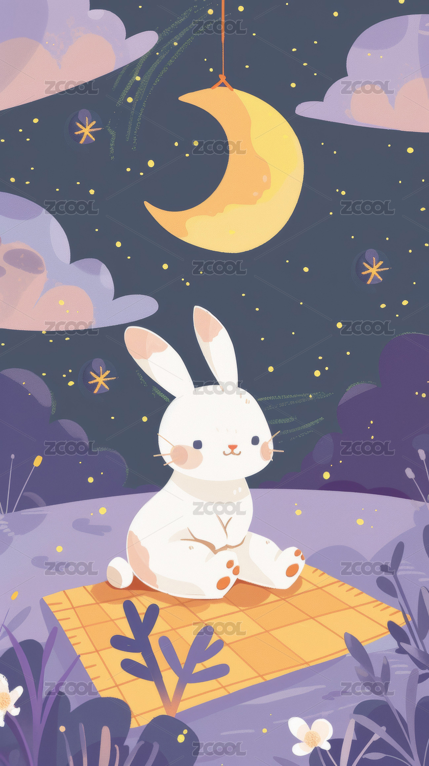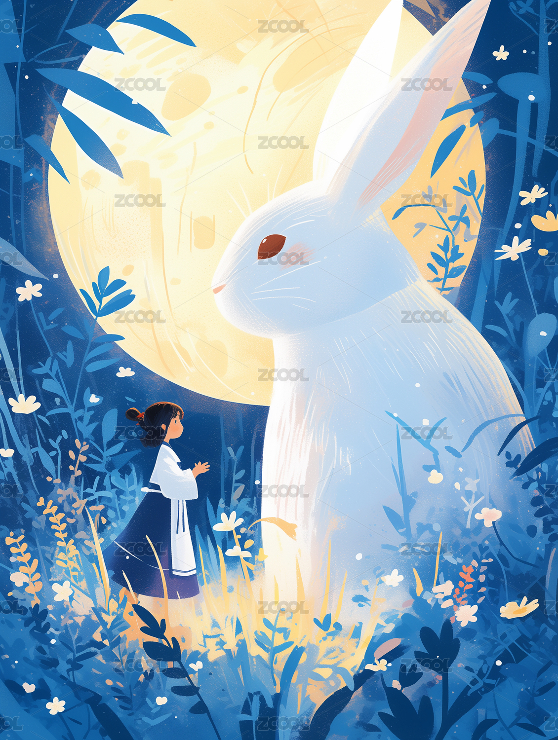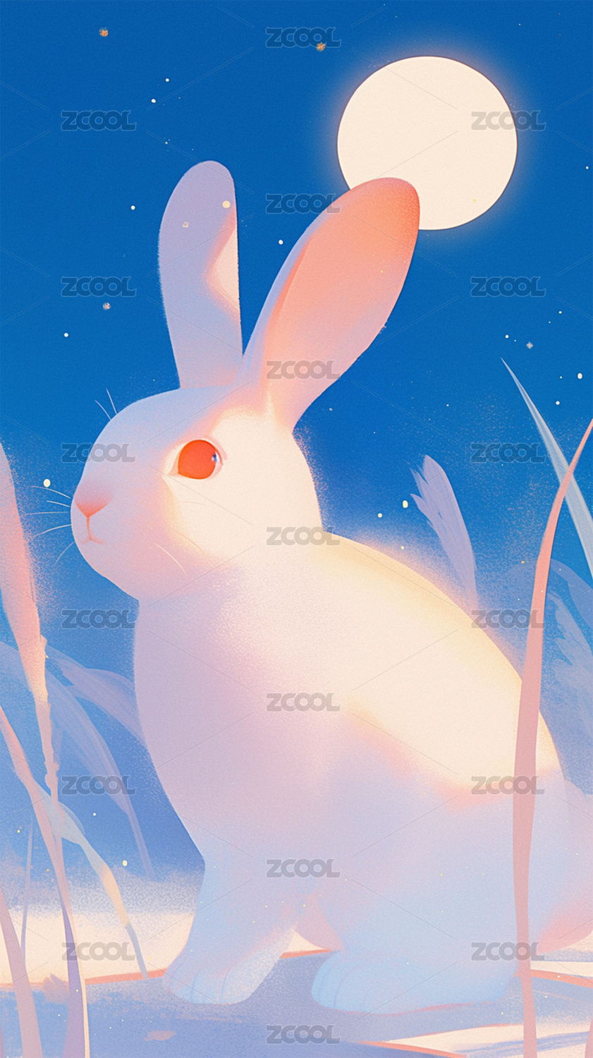 AIGC202403,玉兔,兔子,中秋,节日,插画,背景,圆月,设计