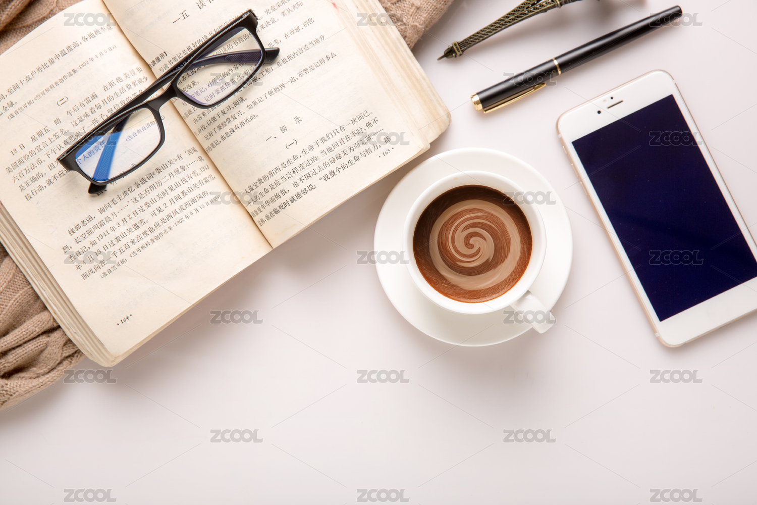 休闲,阅读,学习,粗布,咖啡,笔记,眼镜,手机,本,现代