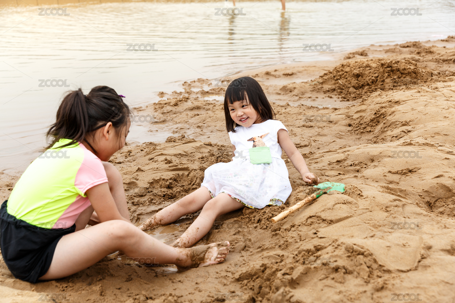 小女孩帮助姐姐拔出陷入淤泥中的脚