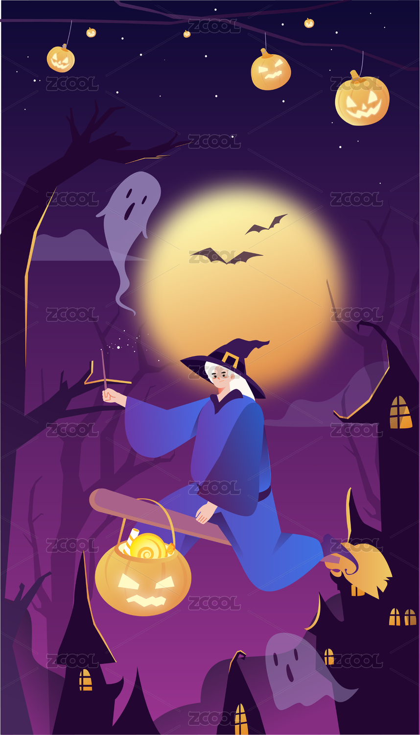卡通万圣节派对庆祝节日电商渐变矢量插画