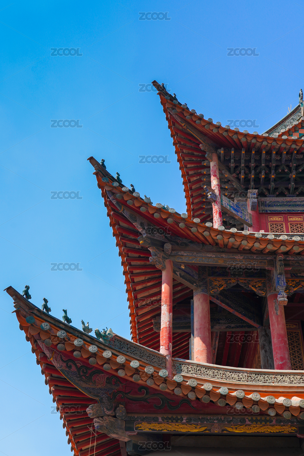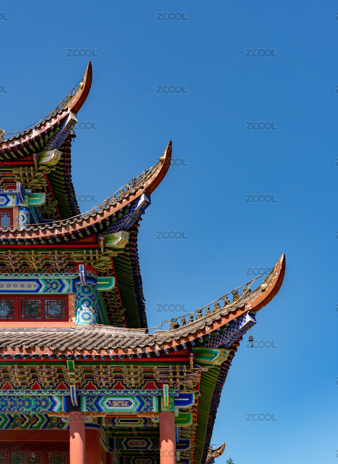 云南大理巍山古城文庙的古建彩绘与飞檐