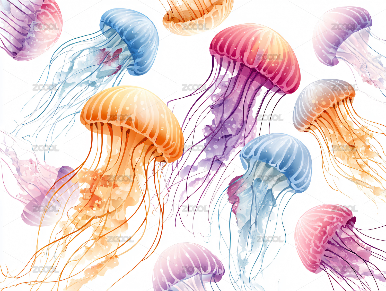 彩色水母漂浮插画