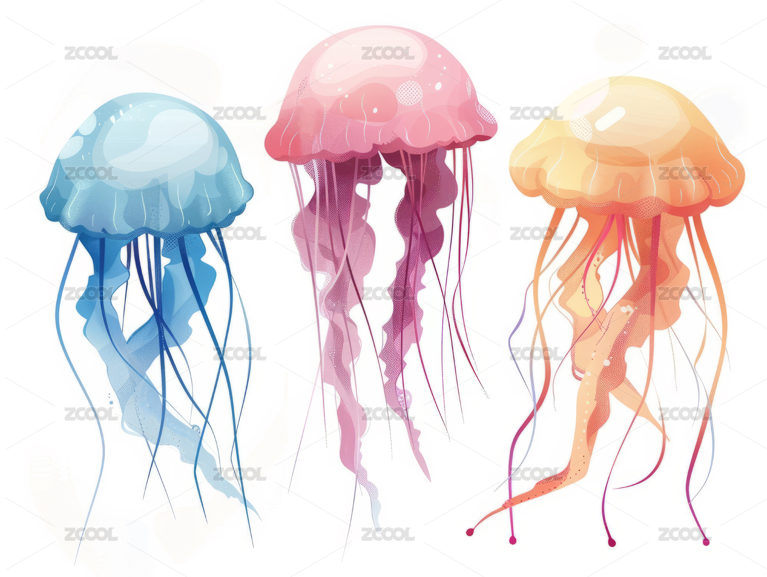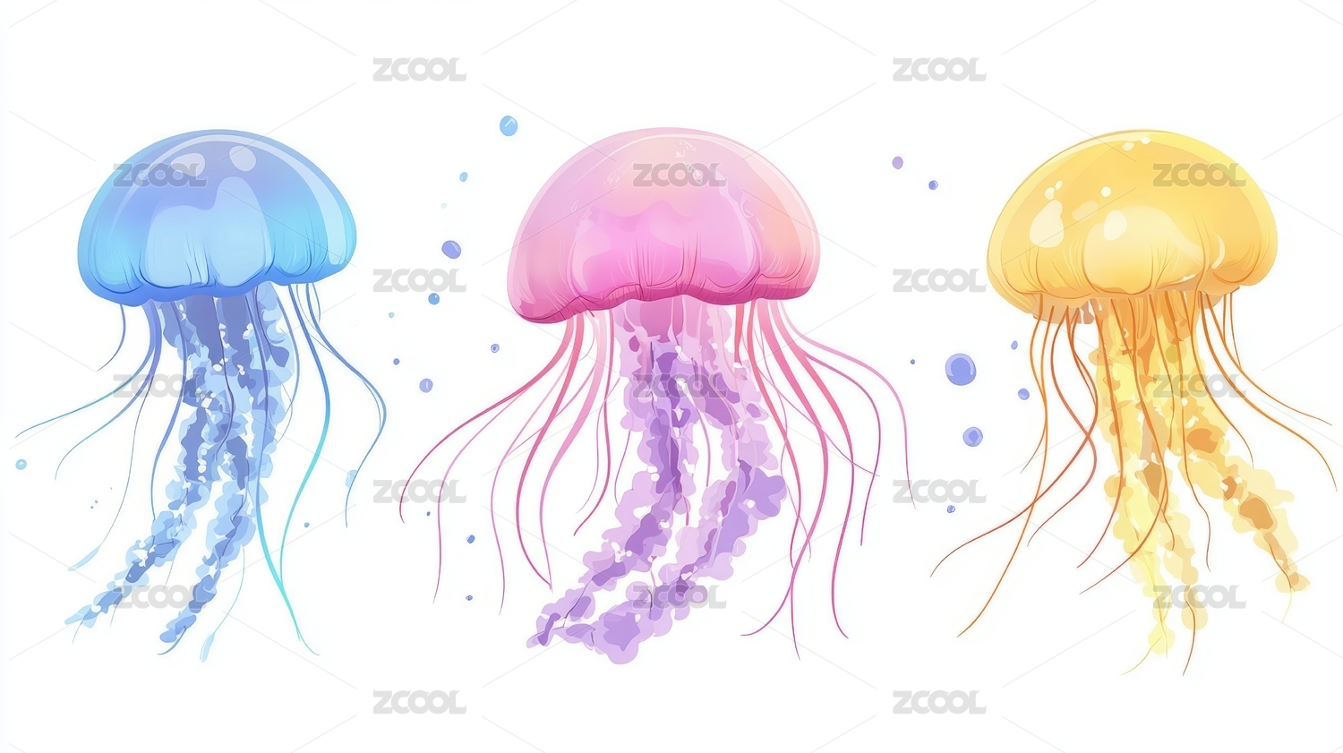 三种色彩斑斓的水母插画