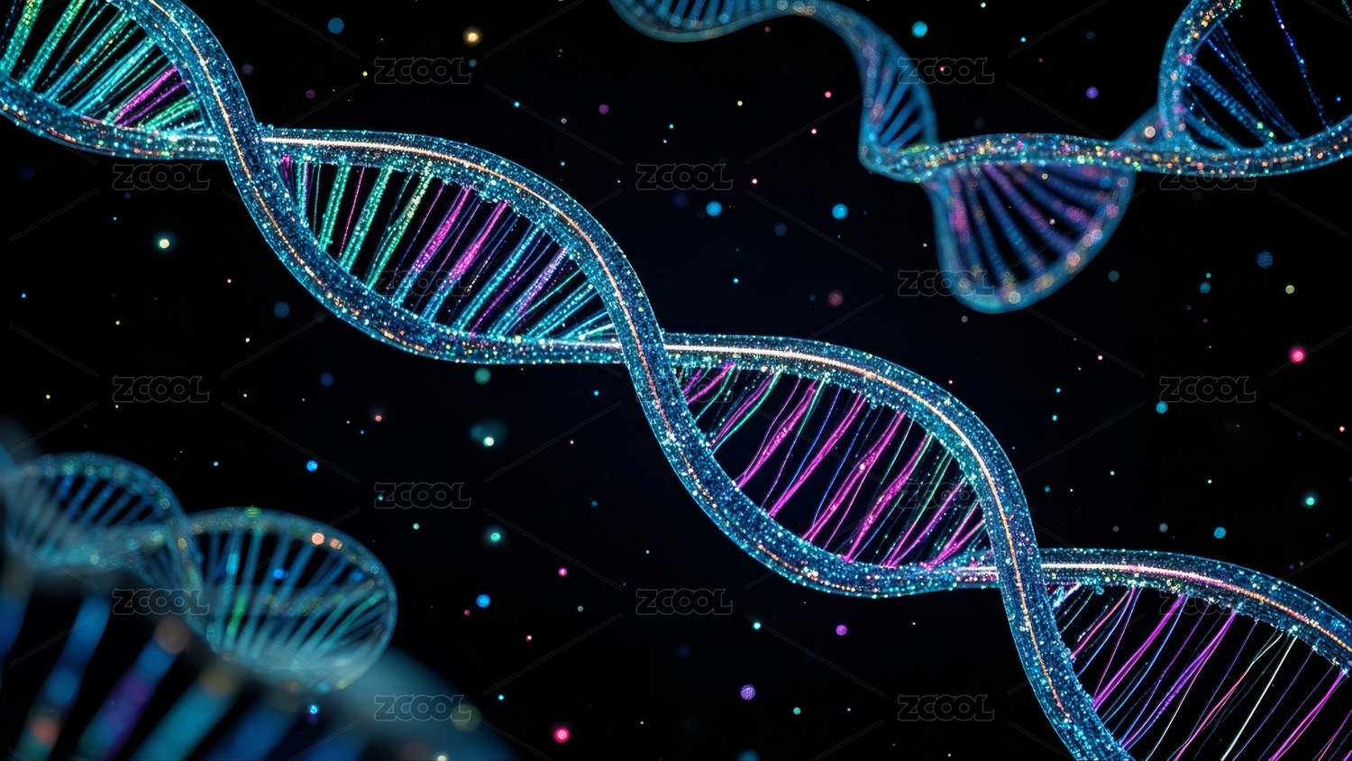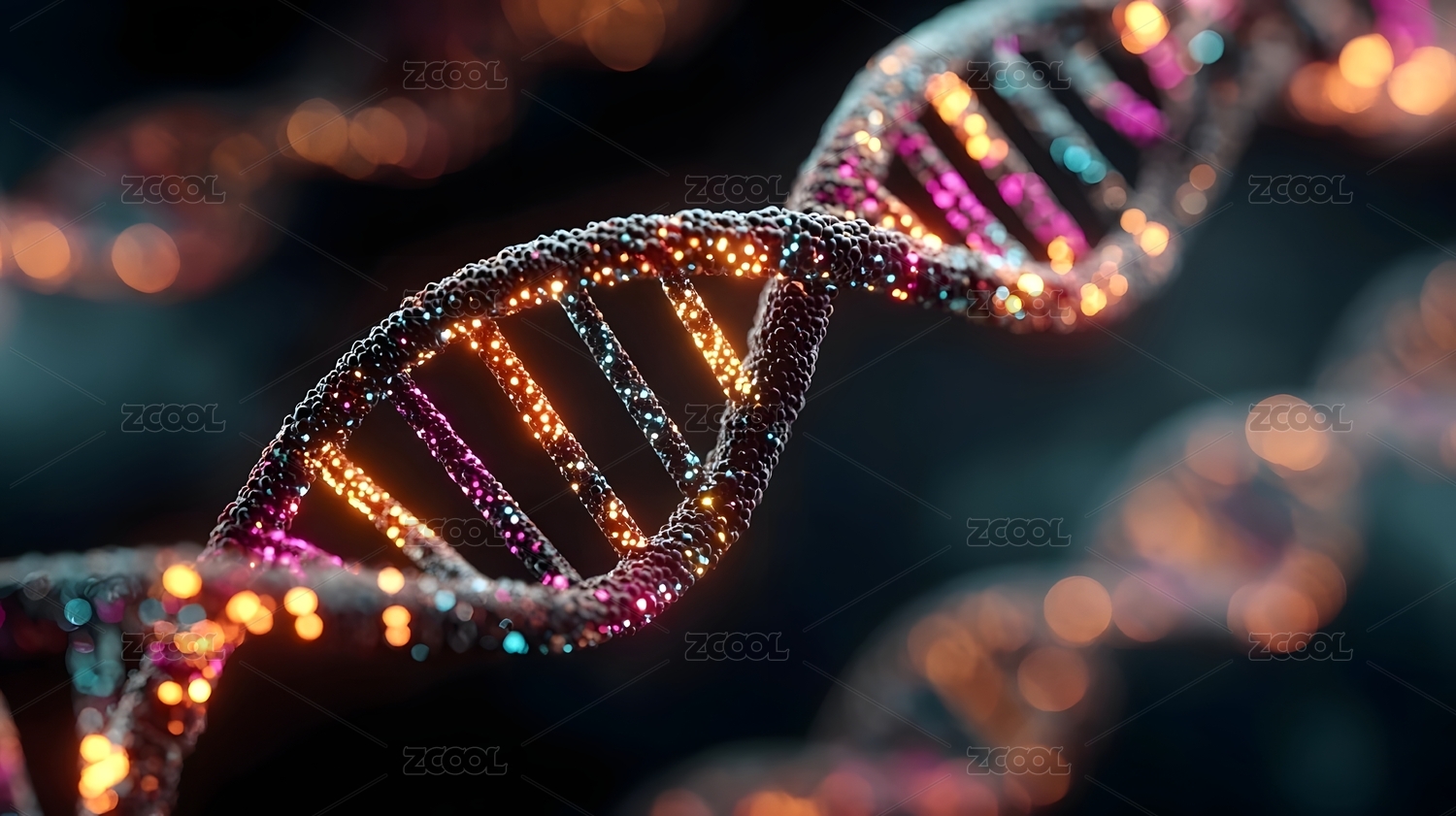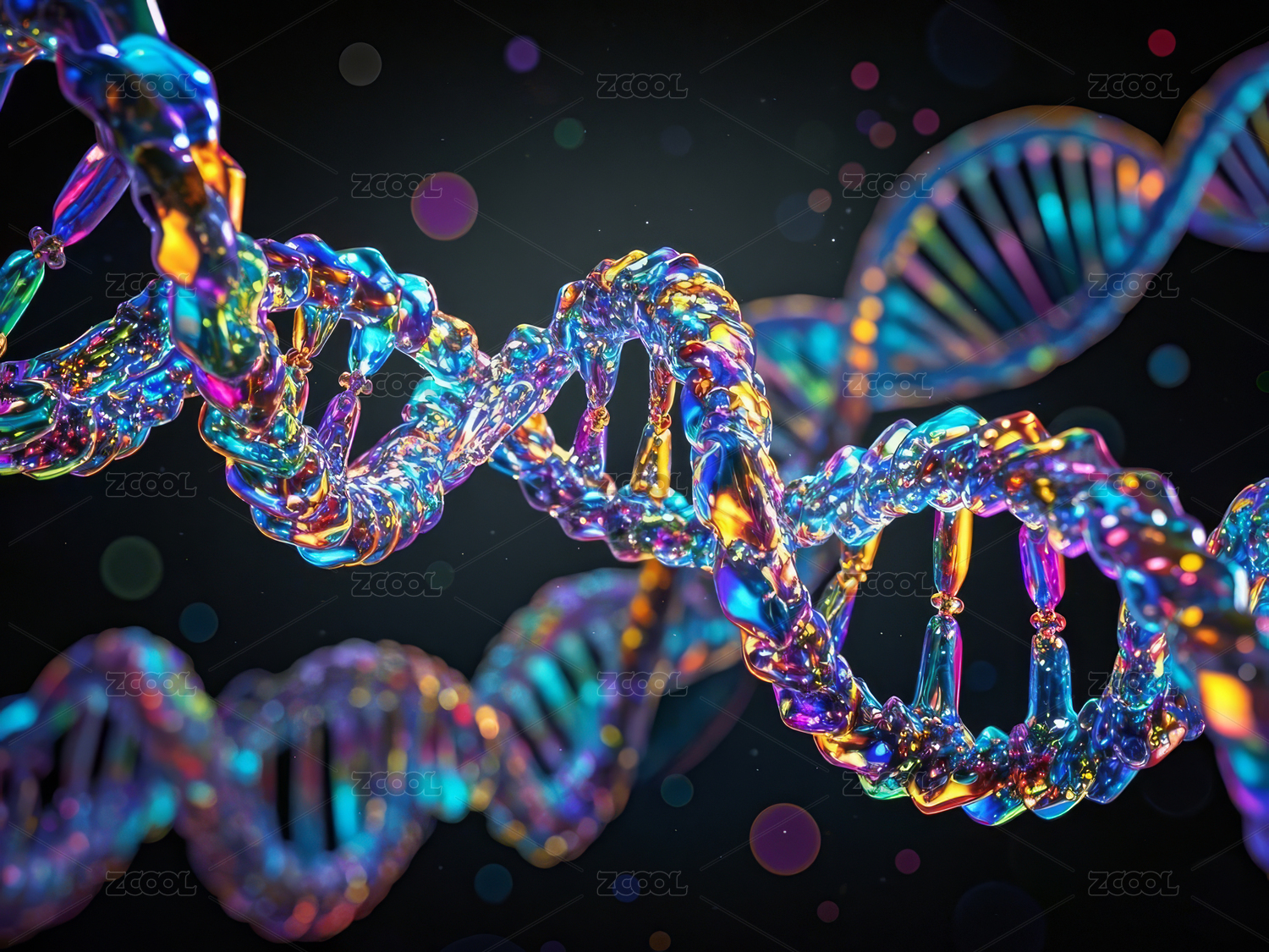 多彩螺旋DNA结构特写