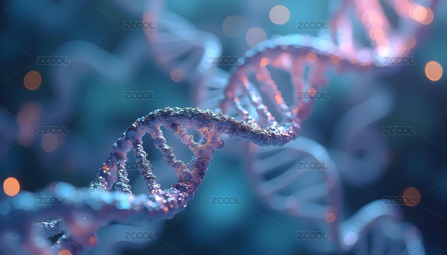 背景,DXCZ202405,科技,DNA ,染色体,橙色,蓝色,螺旋结构,3D渲染,基因