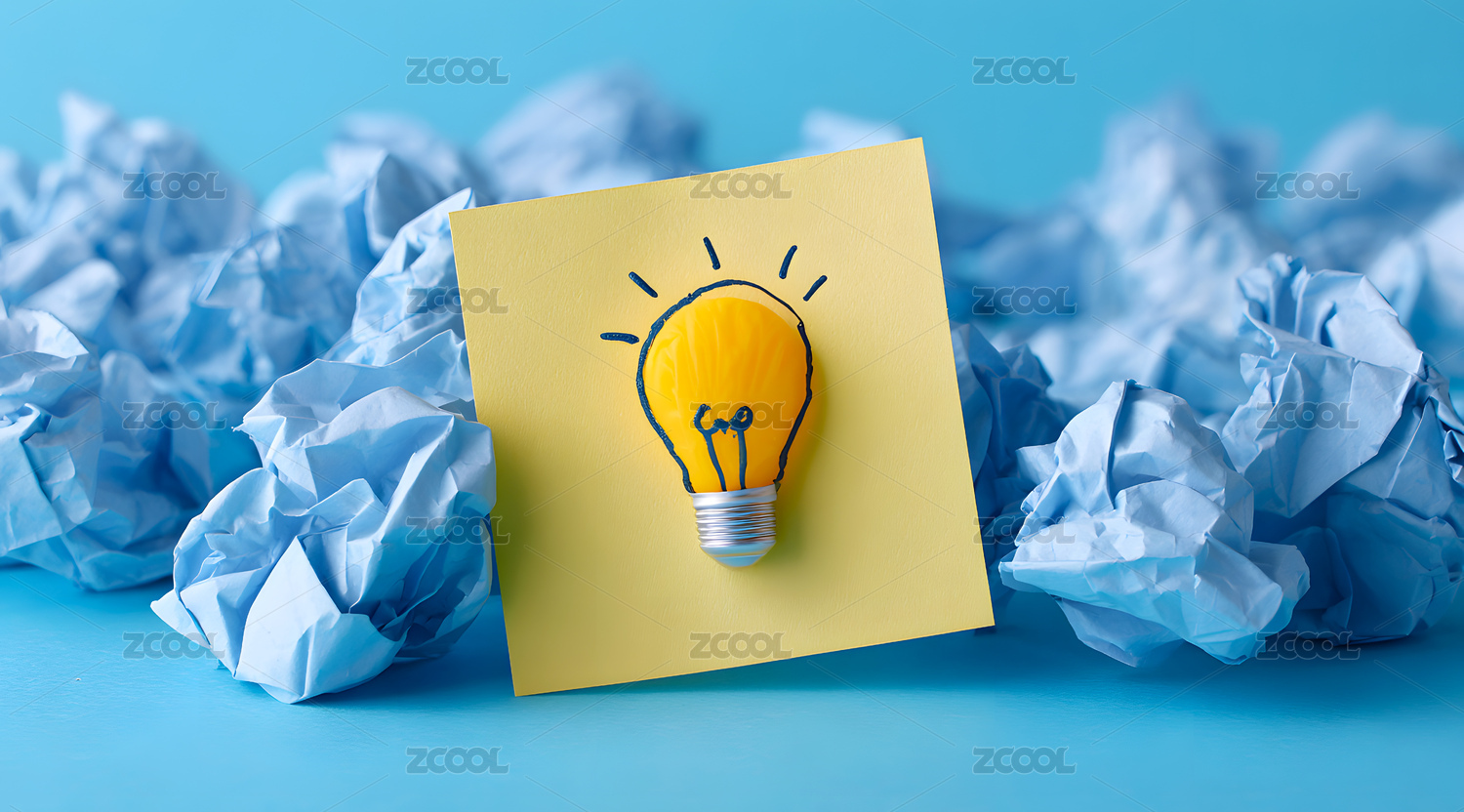 纸团,废纸团,创造力,灯泡,光明,照亮,灵感,弄皱的,想法,黄色