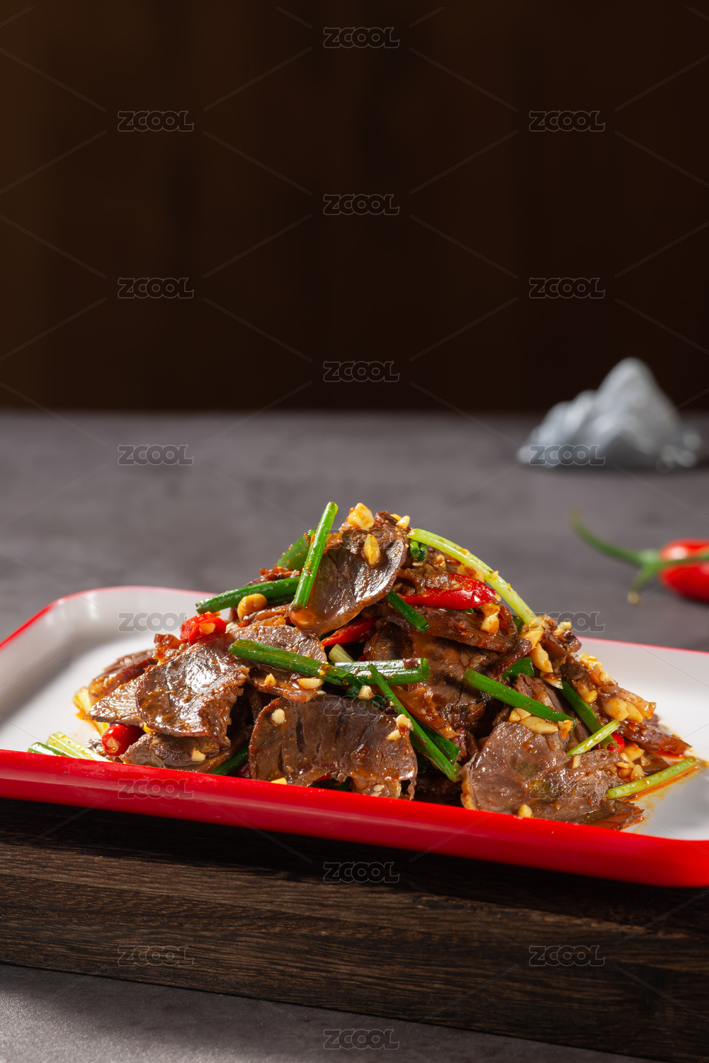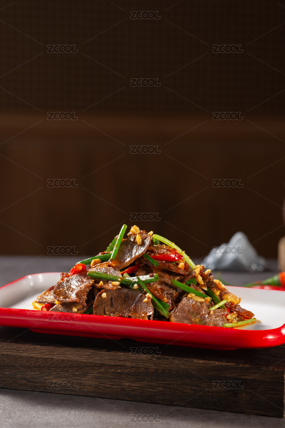 桌面上的盘子里的美味可口的凉拌卤水牛肉
