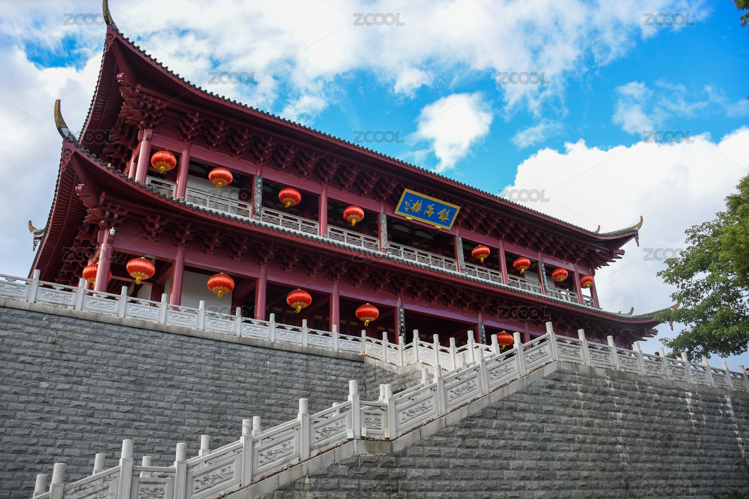 南宁,青秀山,寺庙,天空,蓝天,白云,树,宗教,建筑,建筑外部