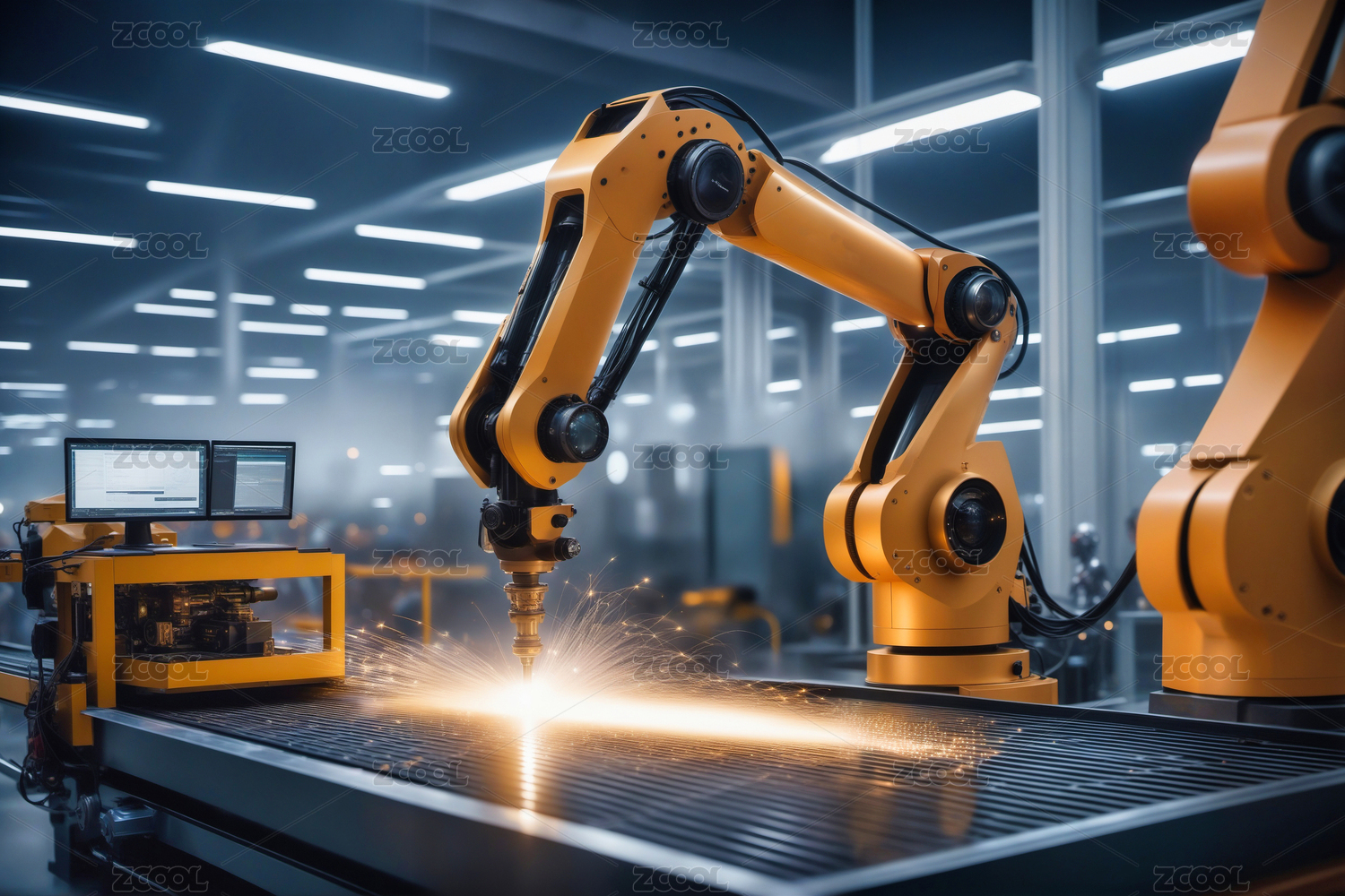 工业车间蓝光机械臂