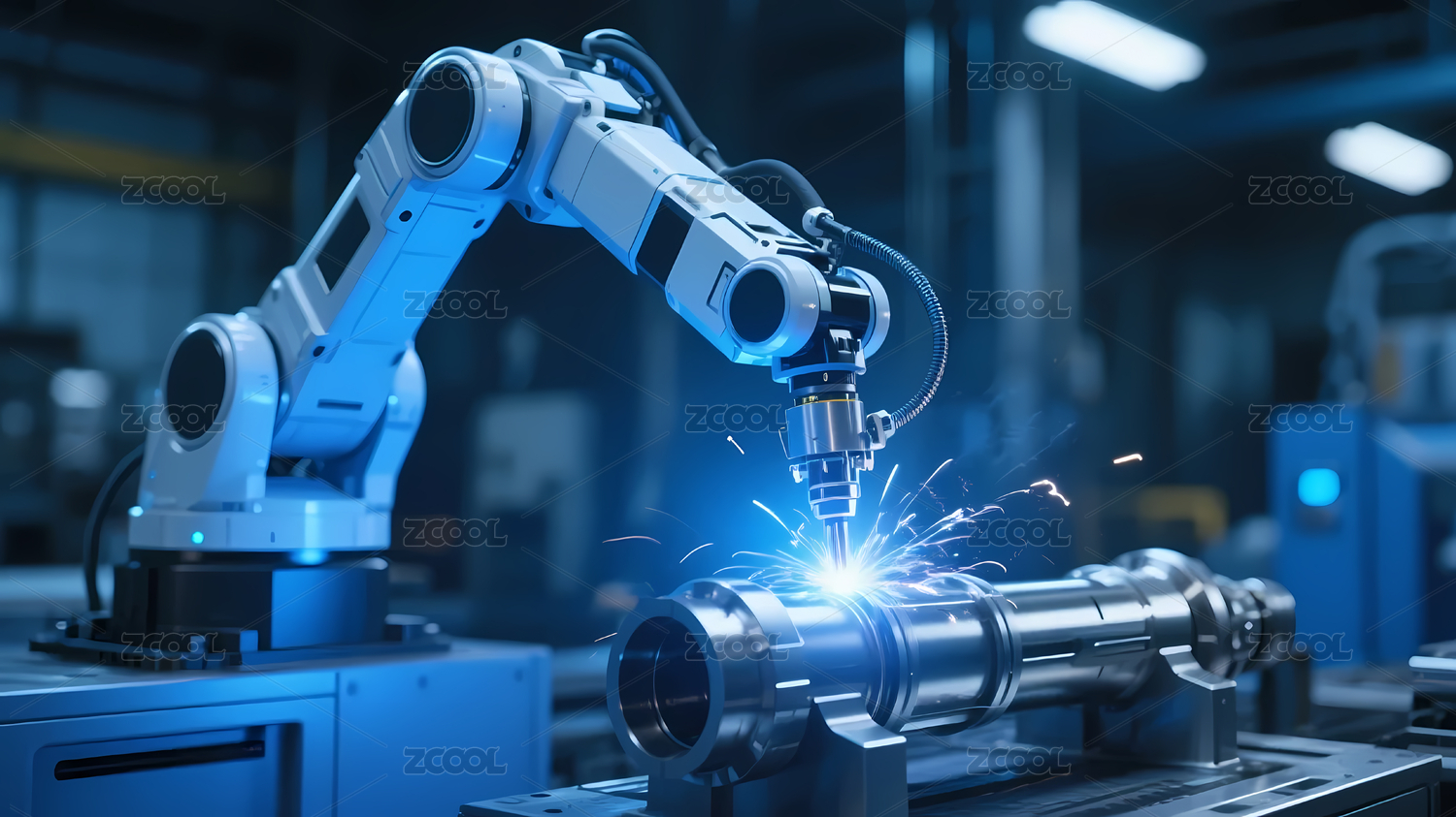 蓝白机械臂工业车间