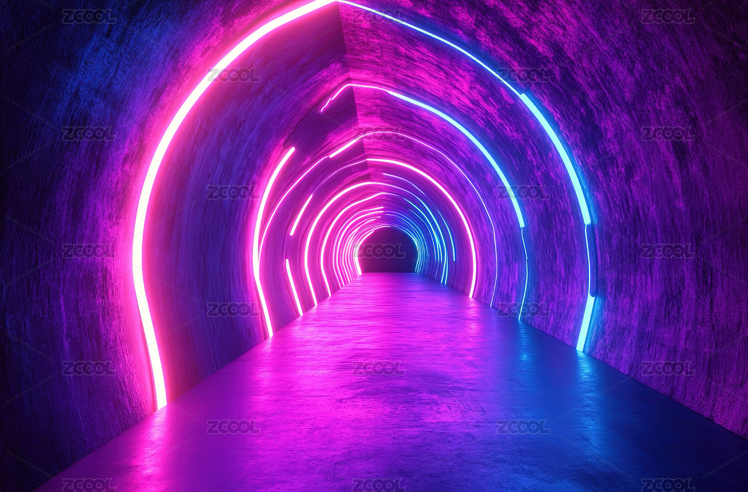 人造空间,AI数字艺术,光,发光,无人,未来,插画,三维图形,隧道