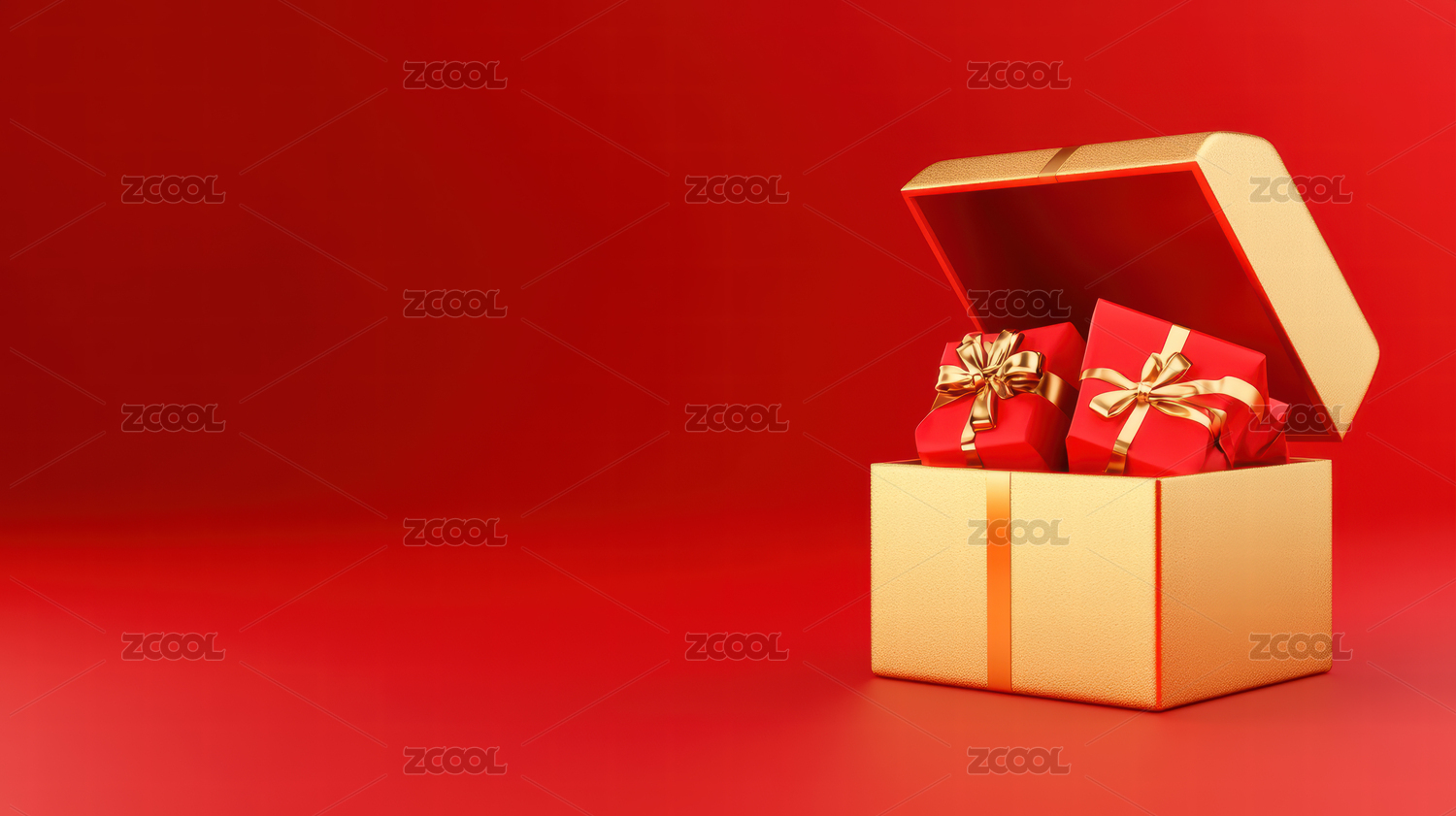 礼物,AI数字艺术,红色,影棚拍摄,装饰,插画,三维图形,包装,生日,缎带