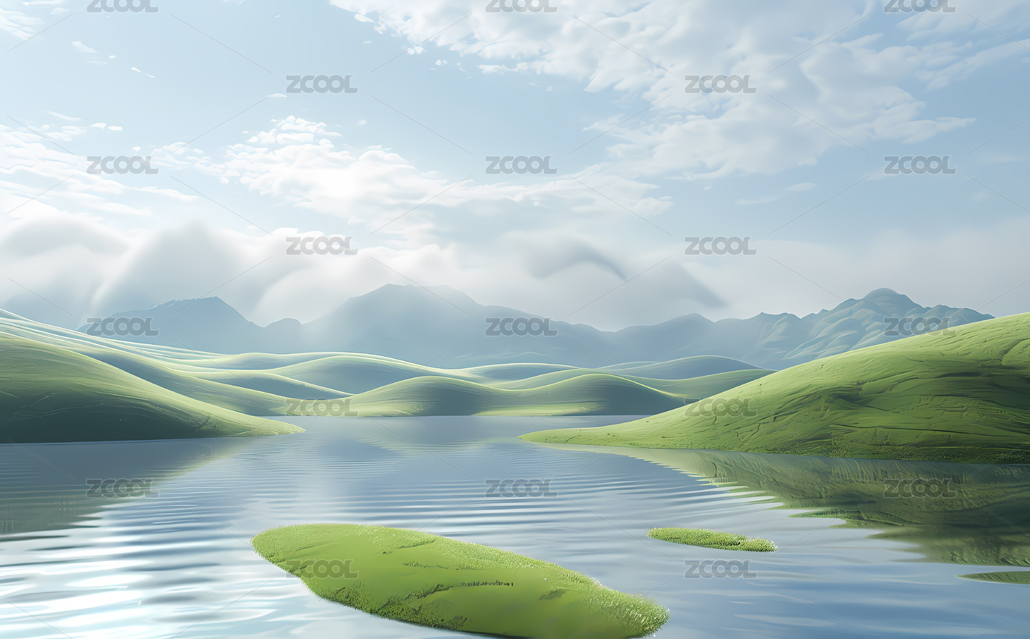 山丘湖面空灵意境