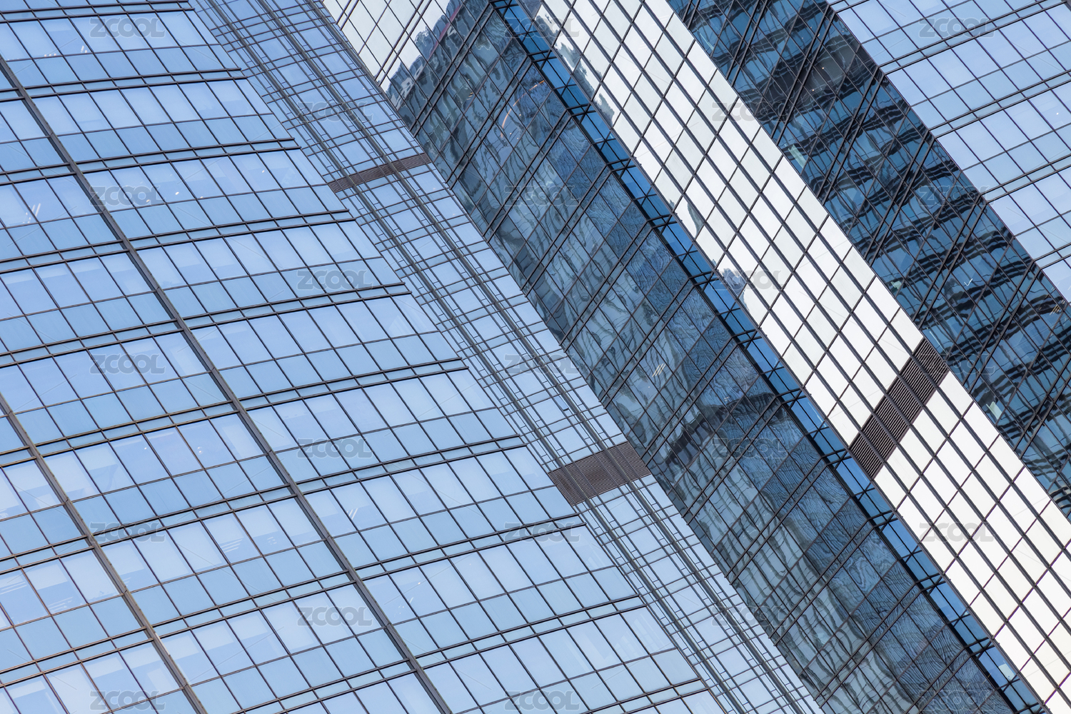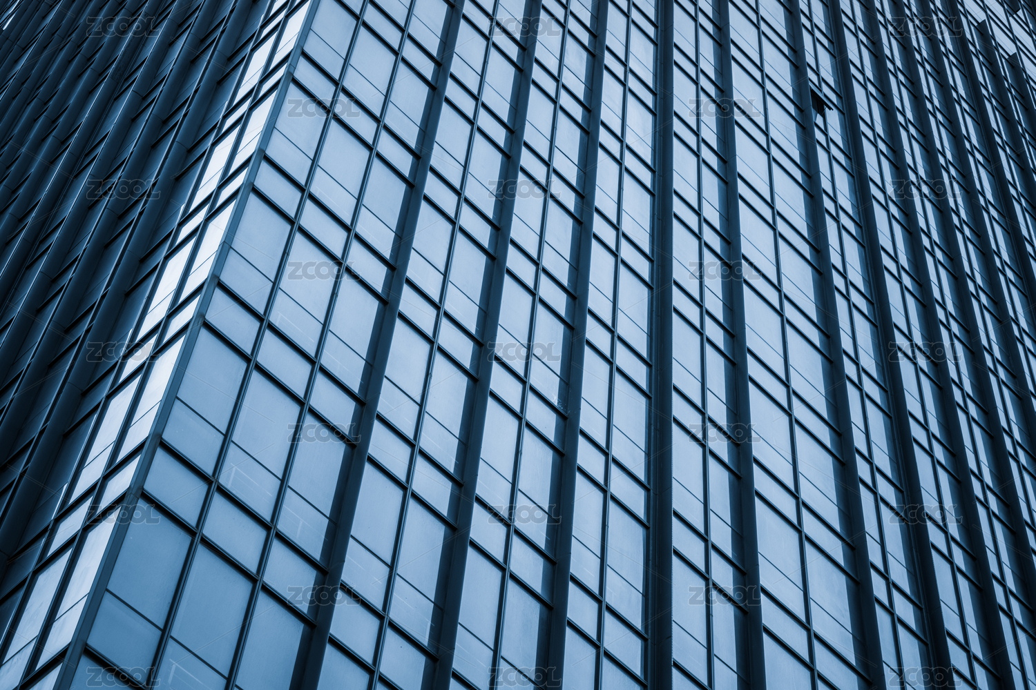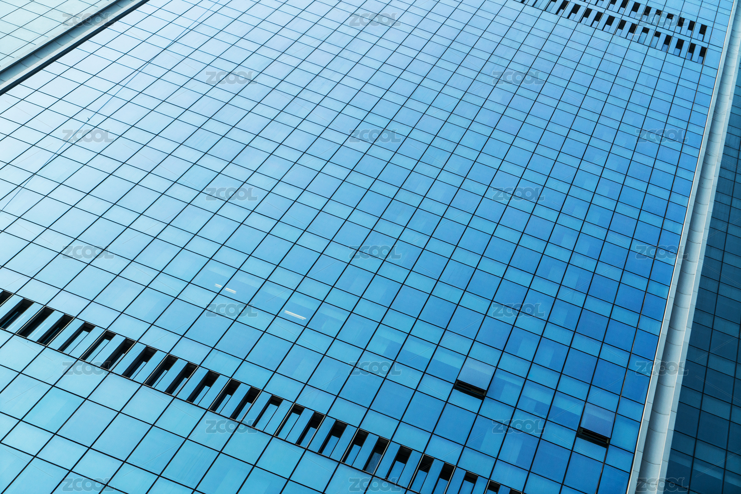 抽象的建筑摩天大楼的蓝色玻璃墙